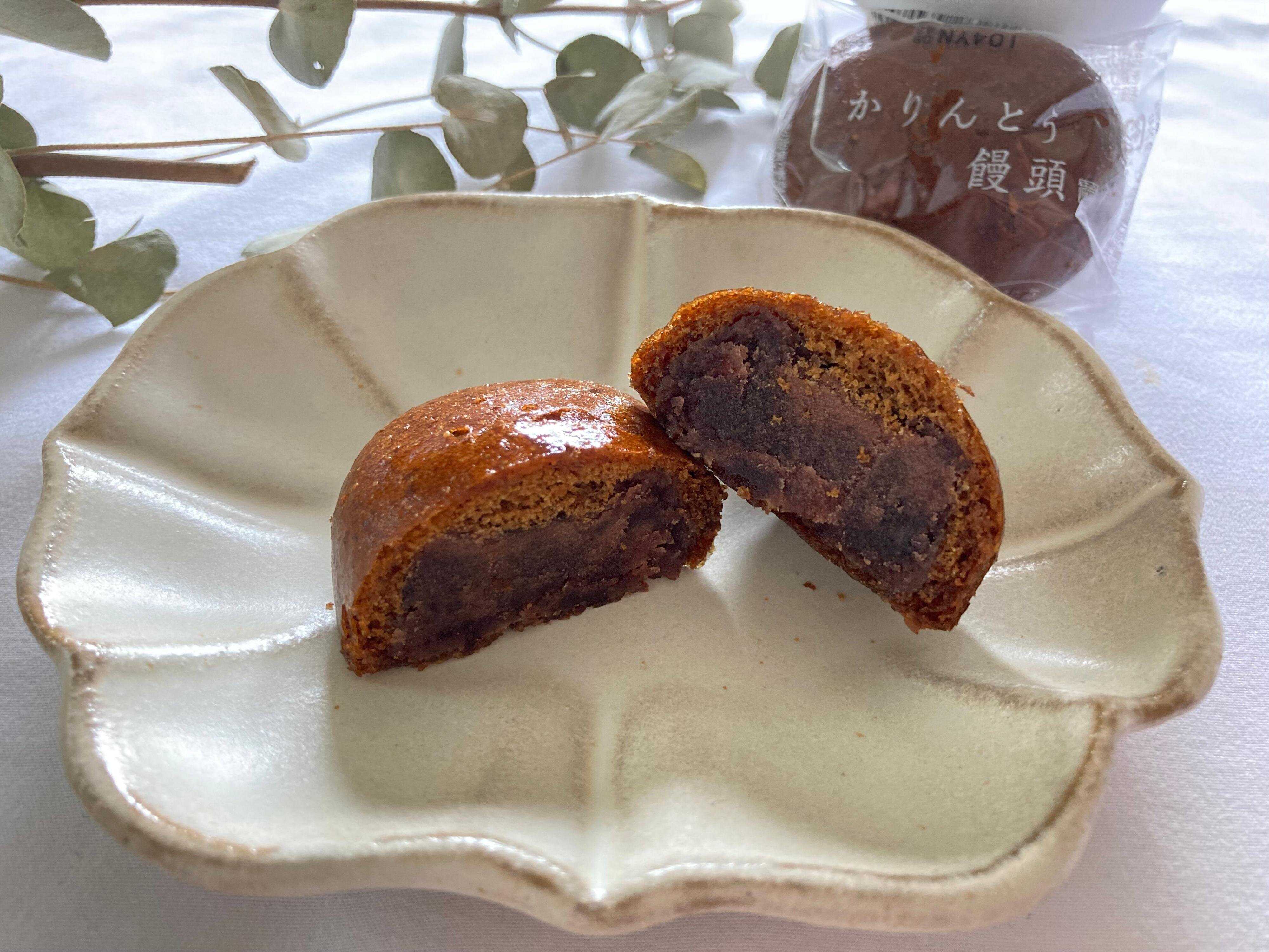 外はカリカリで中は甘みがちょうど良いこしあんがぎっしりと入っていて、おいしいかりんとう饅頭です。
