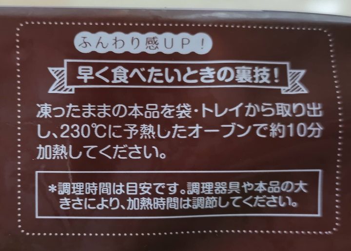 冷凍の状態で販売されていますので、解凍してからいただきます。冷蔵庫で4時間ほどで解凍できるとのことです。急いでいるときは、230℃のオーブンで10分焼いてもよいそうですよ。