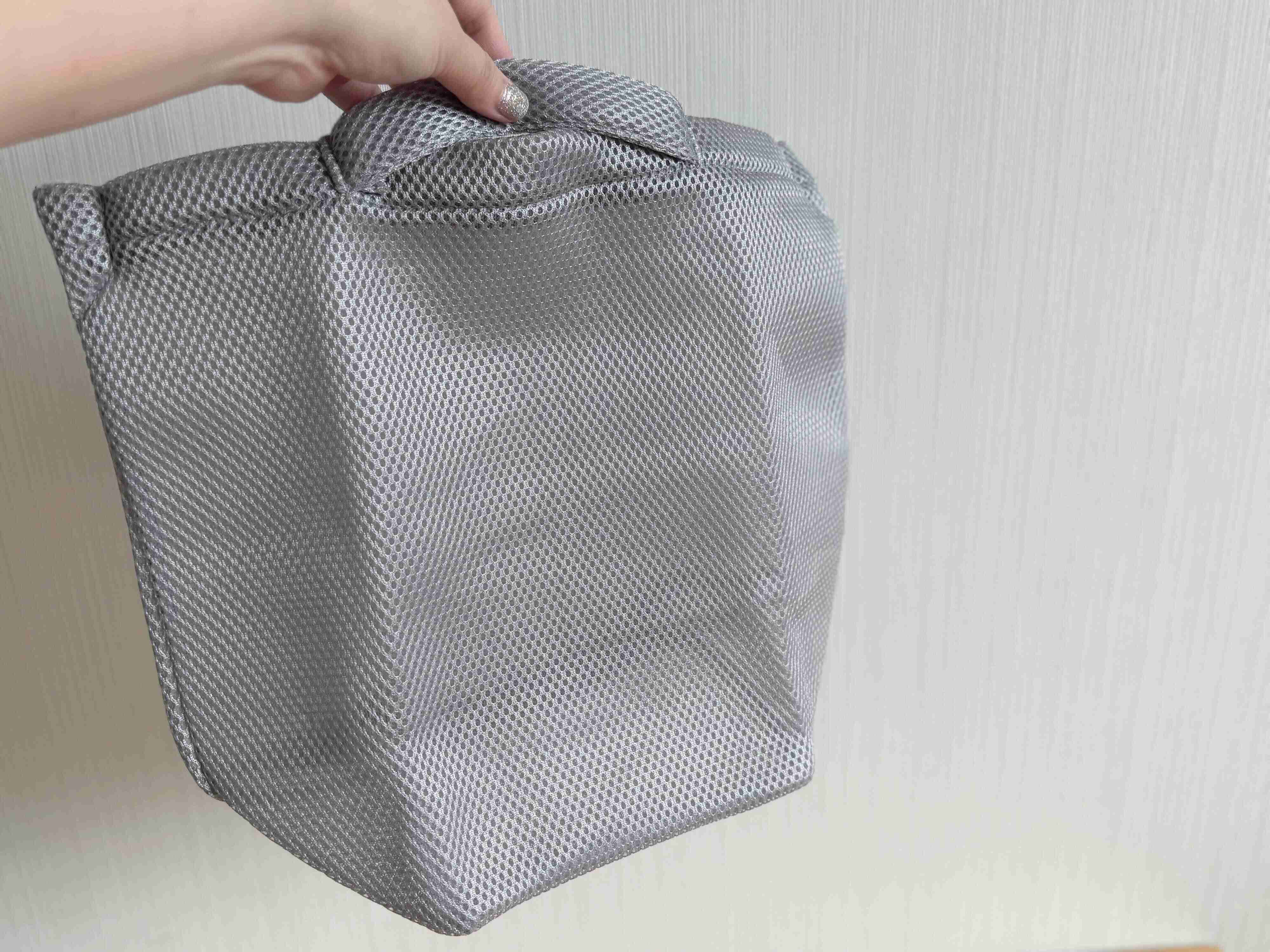 クッション性のある厚手の洗濯ネットです。カラーはグレーと白の2色からお選びいただけます。ドラム式も使えますが、乾燥機は使用不可です。