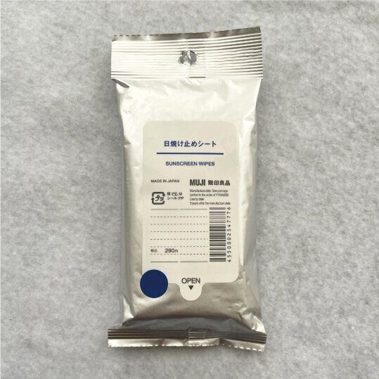 手軽にUV(紫外線)カットができるシートタイプの日焼け止めです。我が家はボトルタイプの日焼け止めクリームを普段使っていますが、お出かけに持って行くとなるとかさばるもの。しかし、無印良品の日焼け止めシートならバッグに入れてもかさばらないほどコンパクト。汗や水で日焼け止めが落ちても小まめにサッと塗り直しができるので面倒くさがりな筆者にピッタリ!塗ったあともベタベタ感はなく、1枚で顔や首、腕などたっぷり使えるので毎年購入するほど重宝しています。