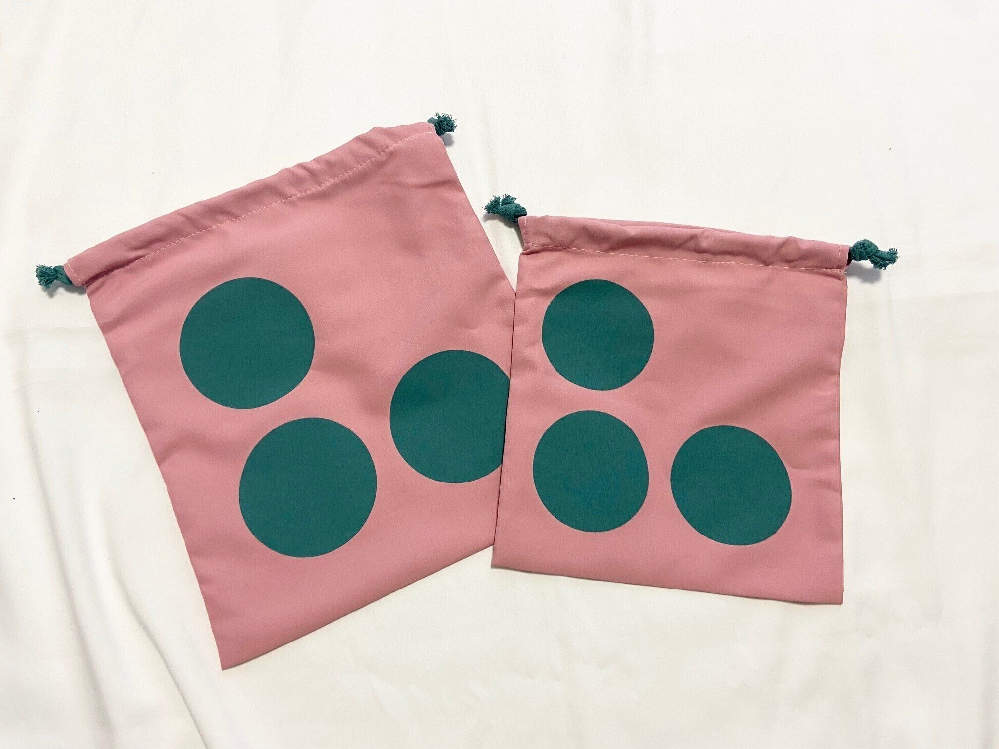 巾着はサイズ違いの2枚セット。「バッグはたくさん持っているからいらないかも」と、いう人は巾着がおすすめ。普段のポーチとして、子どもの給食袋として、旅行の衣類をまとめるとき……などいろいろなシーンで活躍してくれます。