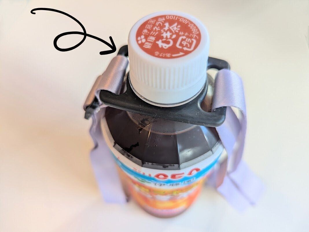 そんなストレスをまるっと解決してくれたのが、セリアの「ペットボトルストラップ」(110円・JANコード:4984831055117)です。ペットボトルを瞬時に斜めがけにできるから、持ち歩くのはもちろん、飲むのも格段にラクに。