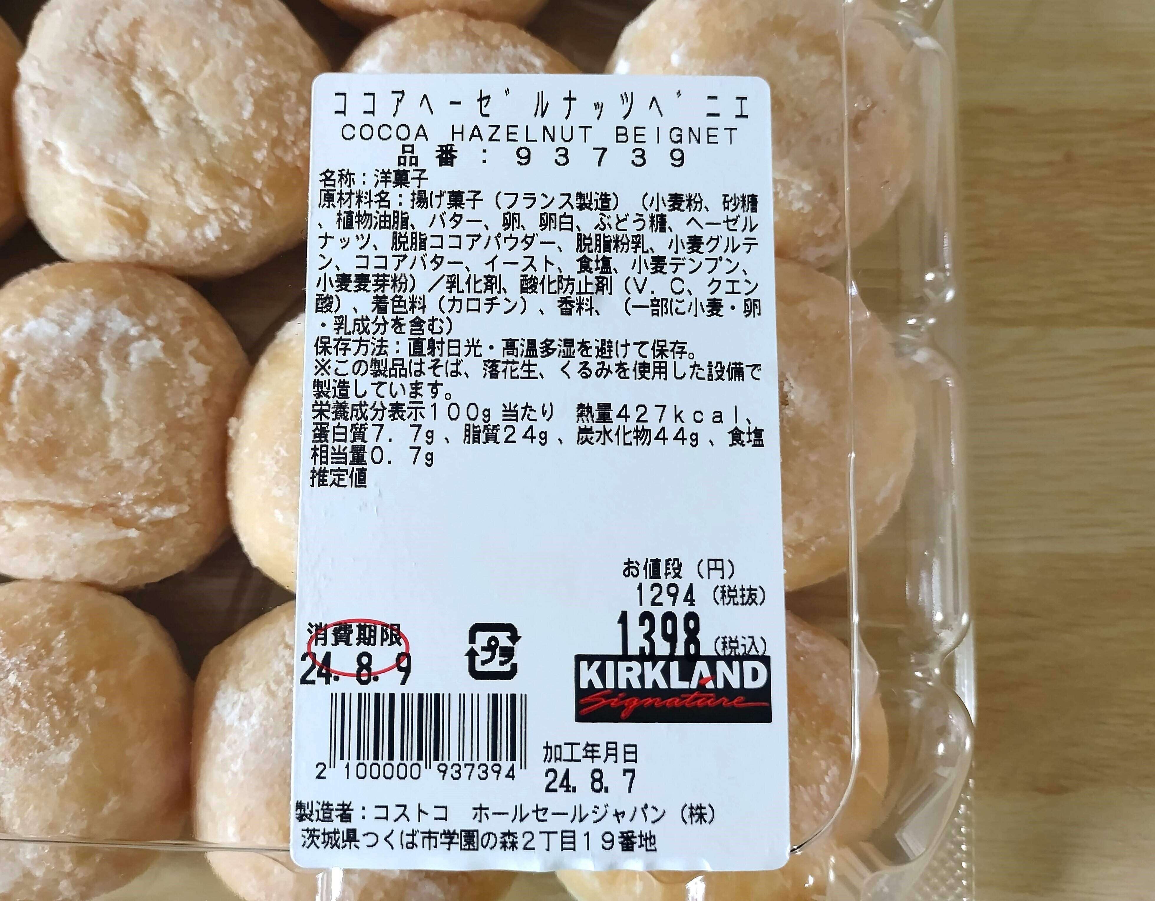 コストコで買える「ココアヘーゼルナッツベニエ」は、25個入りで1,398円(2024年8月筆者購入時)。1つあたり約56円とリーズナブルな価格でベニエを楽しめます。