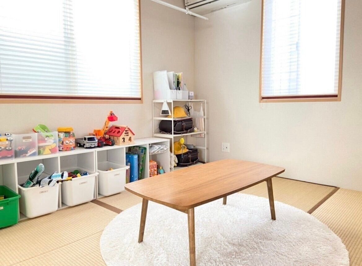 和室は玄関から近く、子ども達が疲れて帰ってきても負荷がかからない場所だったので、片付けや翌日の準備もスムーズでした。またおもちゃの置き場所を和室にすることで、リビングの散らかりを抑えることができました。