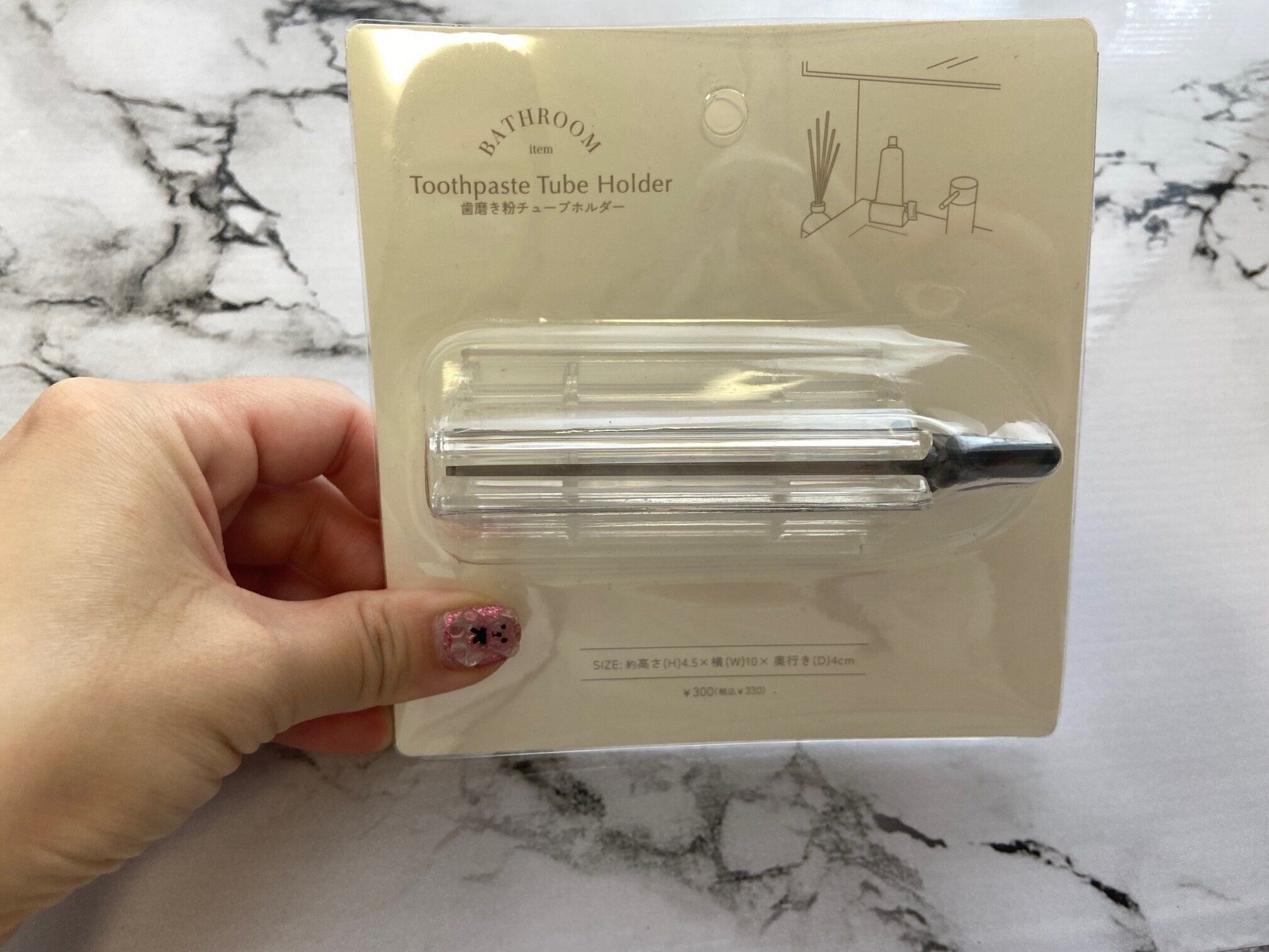 「歯磨き粉チューブホルダー」(330円)は、その名の通り、チューブタイプの歯磨き粉に使用できるグッズ。歯磨き粉を無駄なく最後まで使い切ることができるので節約にもなります。7cmまでのチューブに対応。