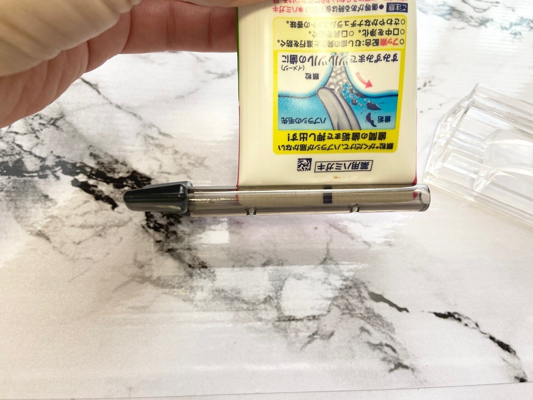 歯磨き粉はチューブの中身を3分の1程度使っているものを使用してください。本体から軸を取り外し、歯磨き粉チューブの端を軸の隙間にセットします。