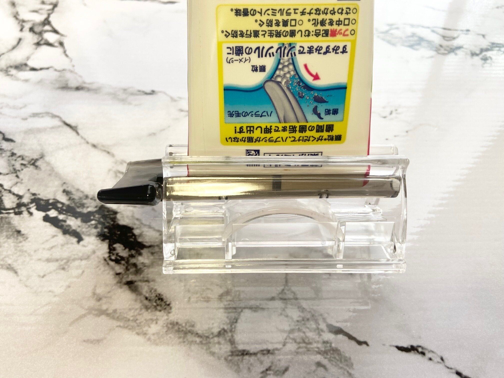 歯磨き粉チューブホルダーはコスメにも使えちゃう!筆者は対応サイズ内のチューブタイプのファンデーションや日焼け止め・スキンケアにも使用しています。少し値段が高いコスメは特に最後まできれいに使い切りたい!そんな願いを叶えてくれる歯磨き粉チューブホルダーはコスメ好き女子の救世主!