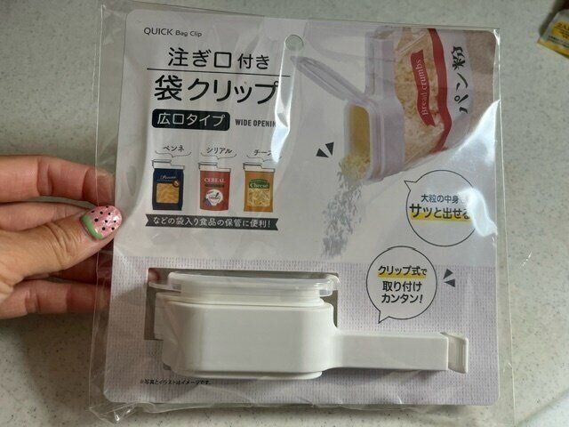 こちらです。「注ぎ口付き袋クリップ」110円。