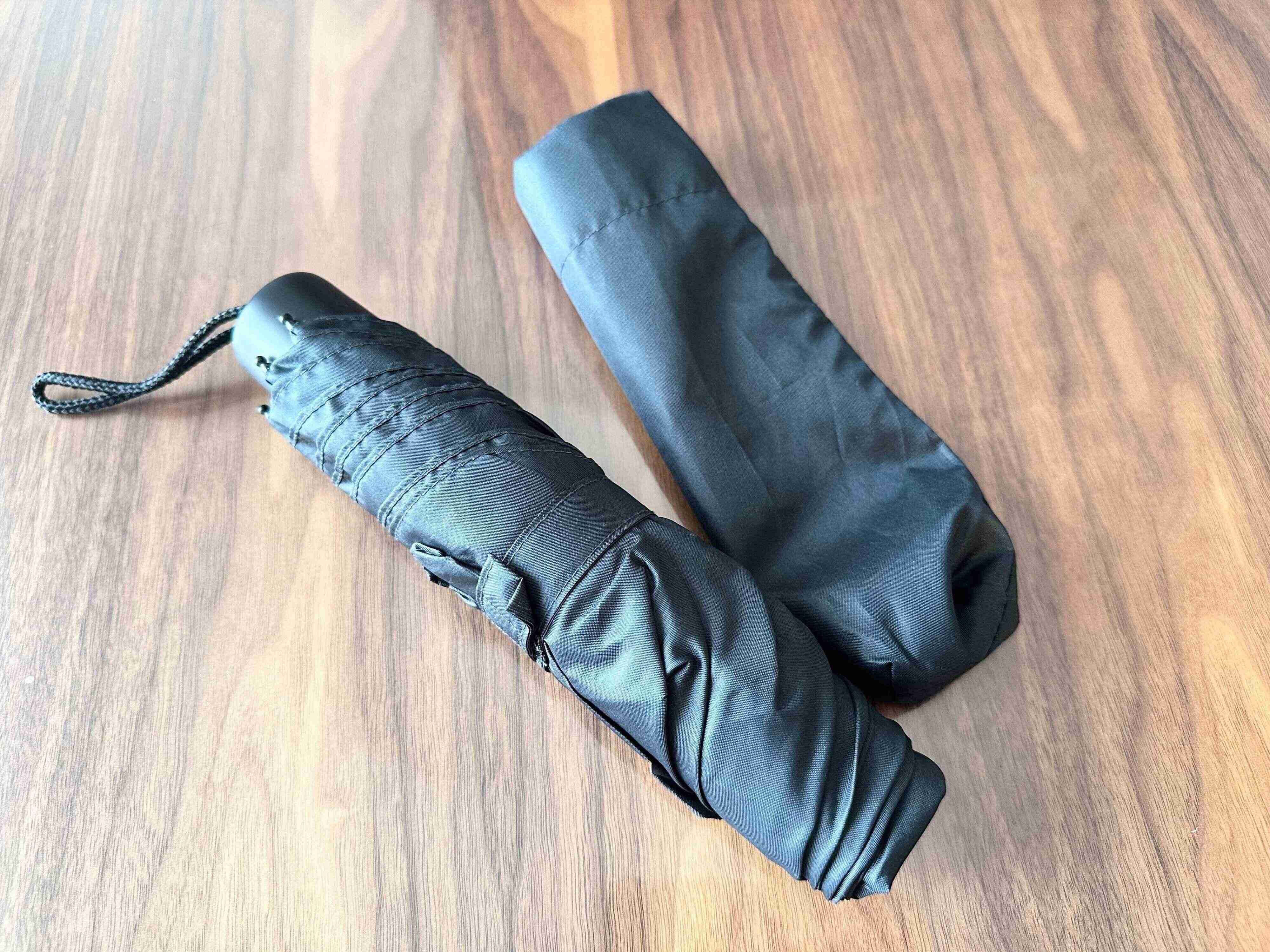 外出時の急な雨に役立つ折りたたみ傘。バッグに忍ばせておくと、慌てなくてすむので便利ですよね。ただ、折りたたみ傘についている傘袋がほんと小さい…きれいにたたまないと入らないし、ぬれている傘にイライラ。お子さんだと至難の業!