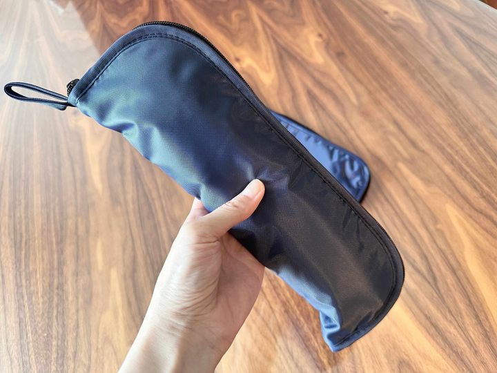 ジッパータイプなので、折りたたみ傘の出し入れがしやすく、ゆとりがあるので、きれいにたたまなくてもスッと入れられるようになっています。
