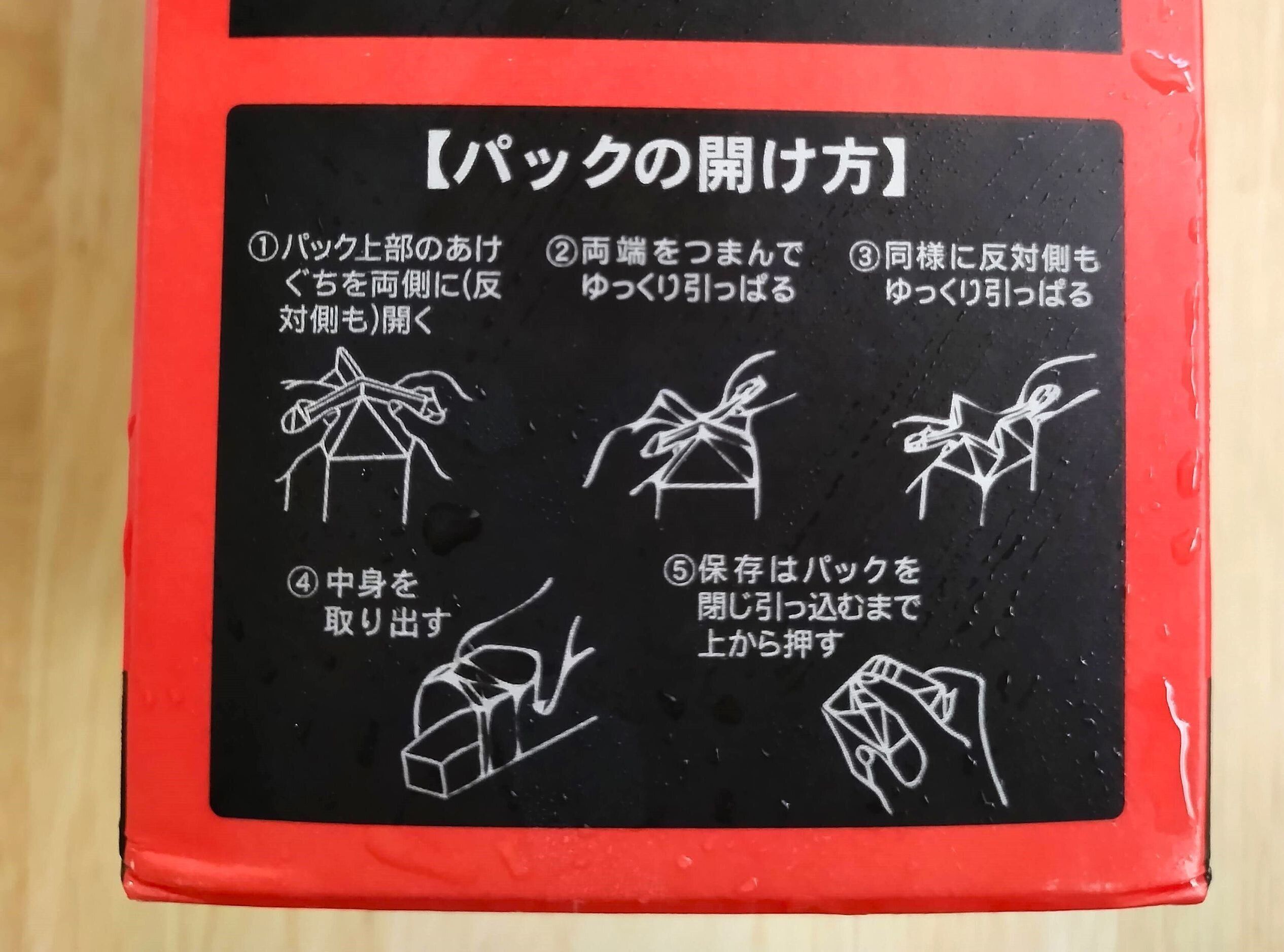 牛乳パックスイーツは何度も買ったことがあるのですが、今までは買ってからすぐにパックから出して切り、タッパーなどにしまっていました。今回パッケージをよく見てみたところ、食べたいぶんだけ少しずつ出すとよいとのこと。そうすれば牛乳パックのまま冷蔵庫に保存できるようなので、タッパーを出さずにすみそうです。
