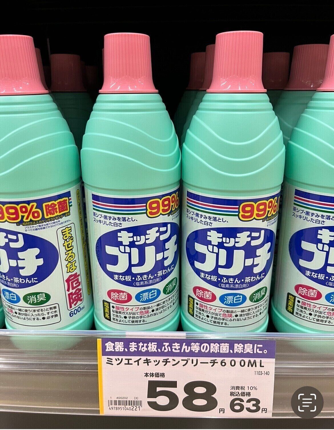 100均だと当然1本600ml税込110円ですが、筆者はドラッグストアで税込63円で購入しています。