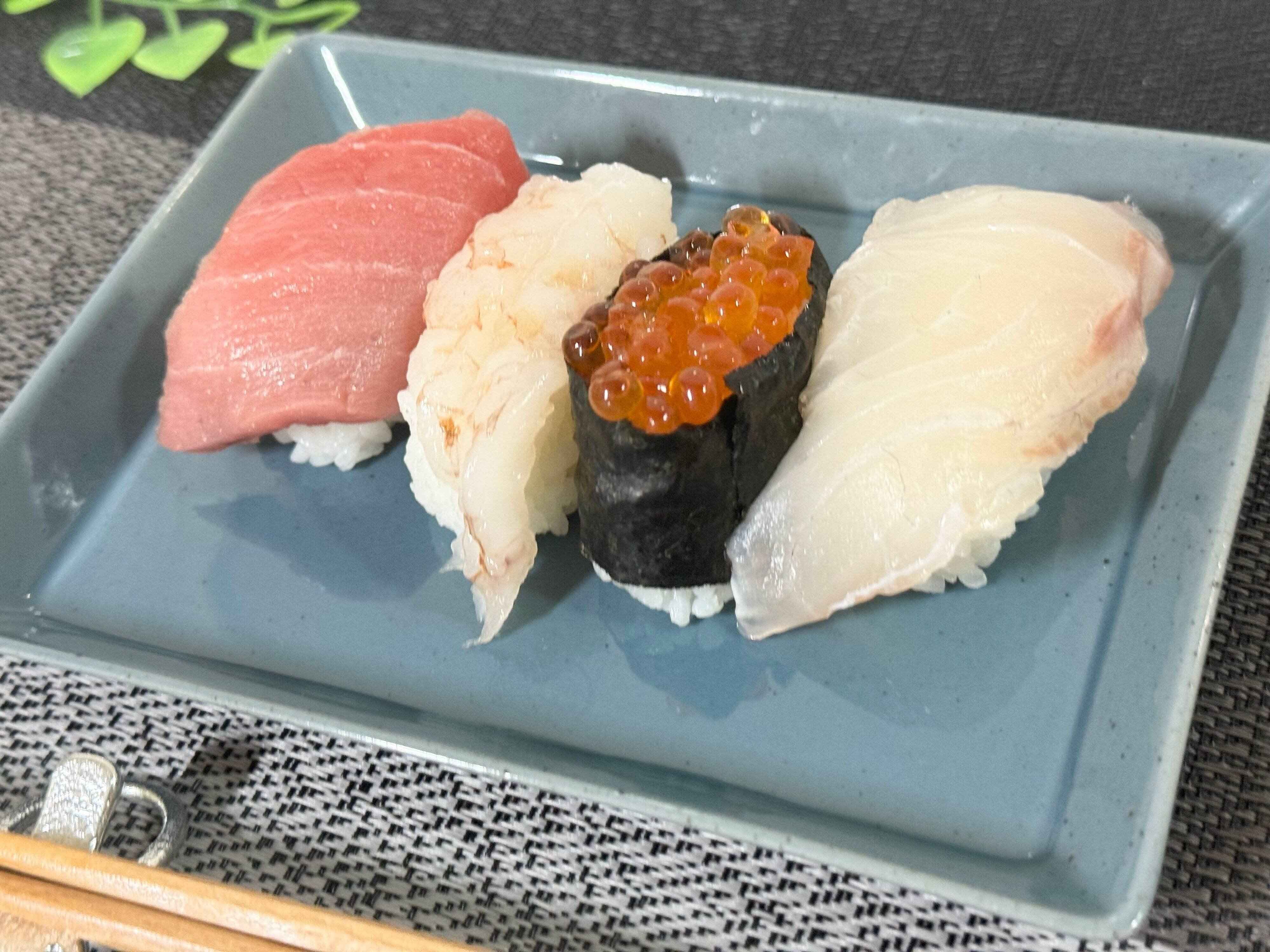 食べてみてもどのネタも濃厚でおいしい!!タイは歯ごたえがあり噛むほど味がでてきて最後までおいしい。中トロは大トロに近いものから赤身と中トロのバランスが良いものもあったのでお好みのものを選んでみてください。生えびはぷりぷりを通りこしブリン!とした歯ごたえととろける甘さがたまりません。いくらはたっぷりとのっており1口でほおばると口いっぱいに幸せが広がります。
