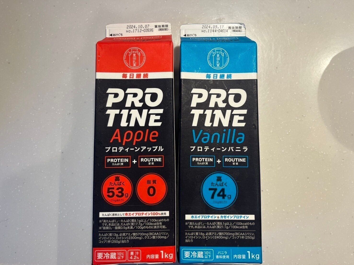 業務スーパーの「PROTINE」は「たんぱく質(PROTEIN)を習慣(ROUTINE)に」という思いで作られたプロテインドリンク。日常に取り入れやすい「PROTINE」をアップル、バニラそれぞれの特徴とともにご紹介します。