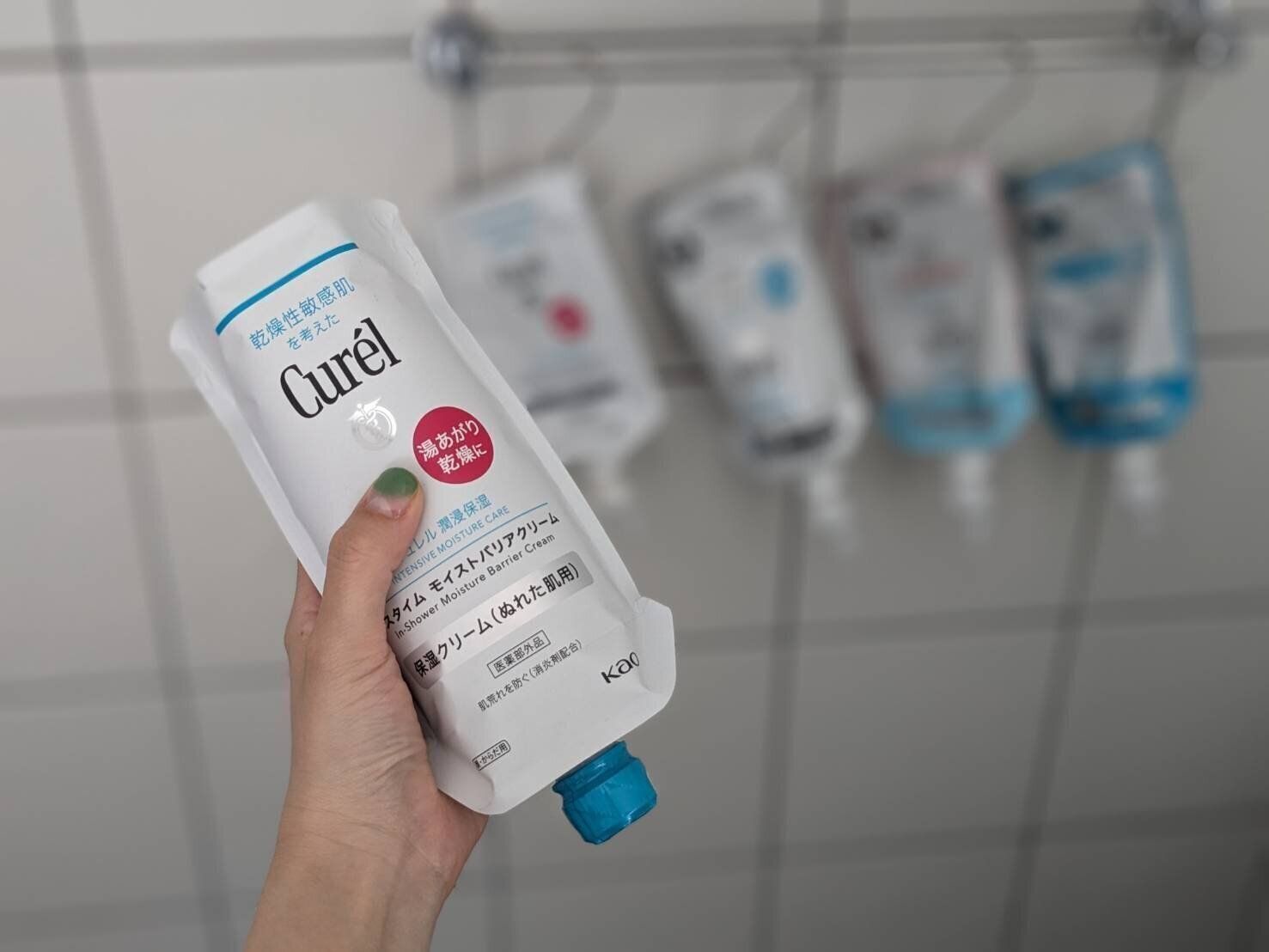 寒い冬場はもちろん、夏場でも、ロクに拭ききれていない体でクーラーの効いた部屋に入り、子どもの保湿をするのはツライですよね。そんな時にオススメなのが、キュレルの「バスタイムモイストバリアクリーム」です。