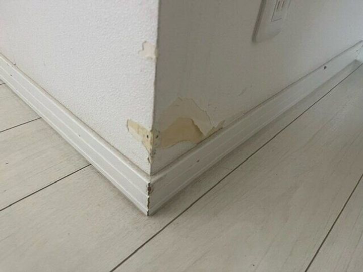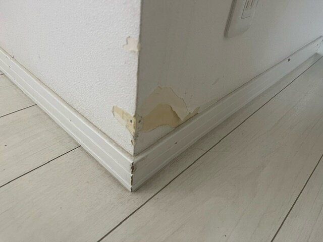 実は、数カ月前から壁紙がこのようにはがれています……。下の方とはいえ結構目立ちます。