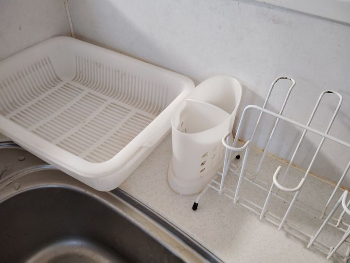 以前は100均の水切りかごとカラトリー入れ、コップ置きの3種類を置いていました。