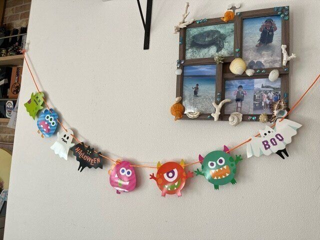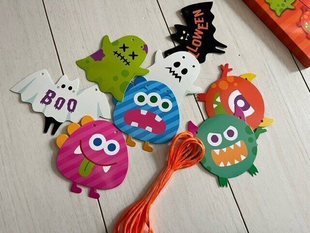 こんなにかわいいガーランド。おばけやモンスターのセットで紐までついていました。