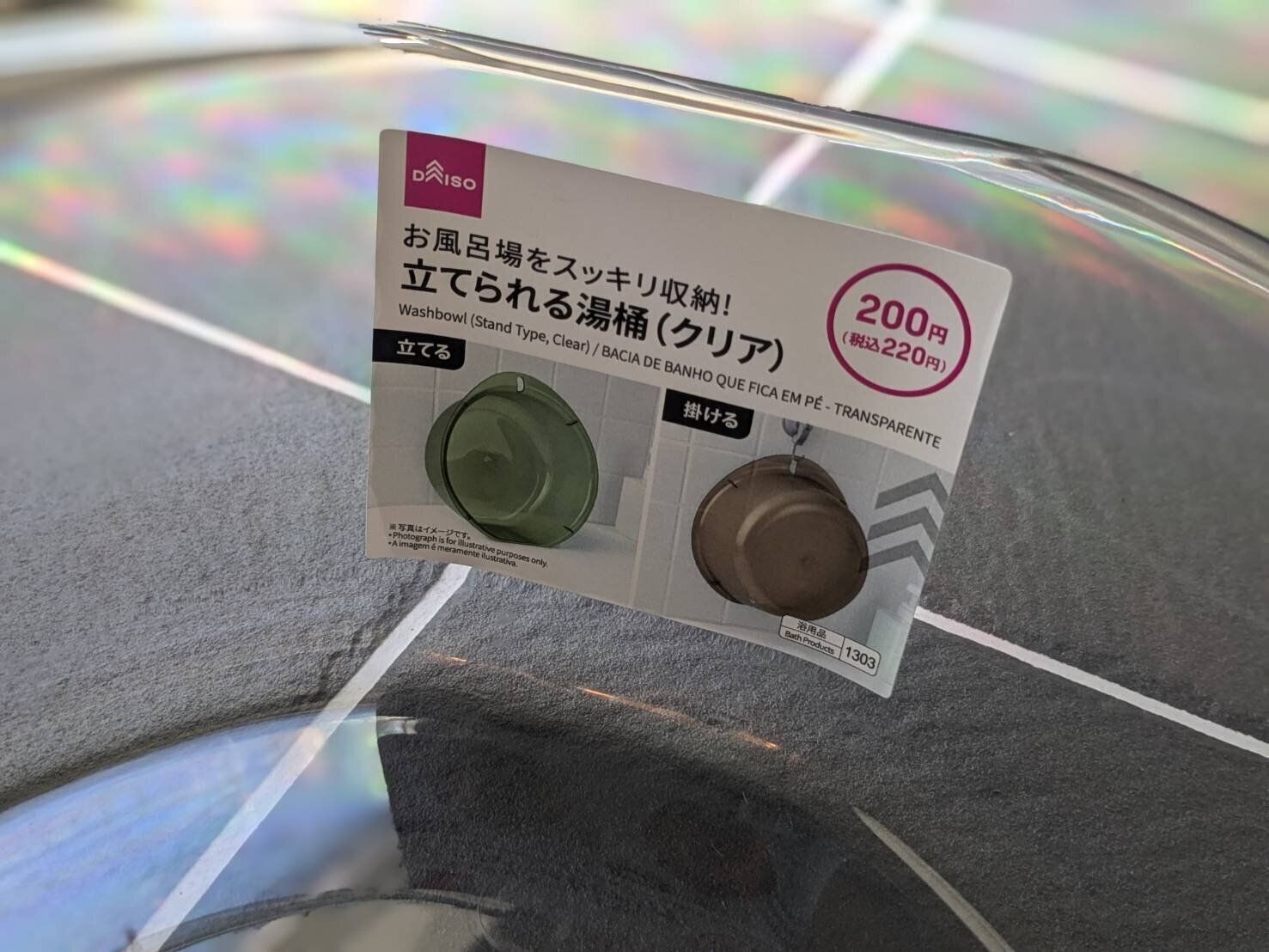 商品名:立てられる湯桶(クリア)(ダイソー)