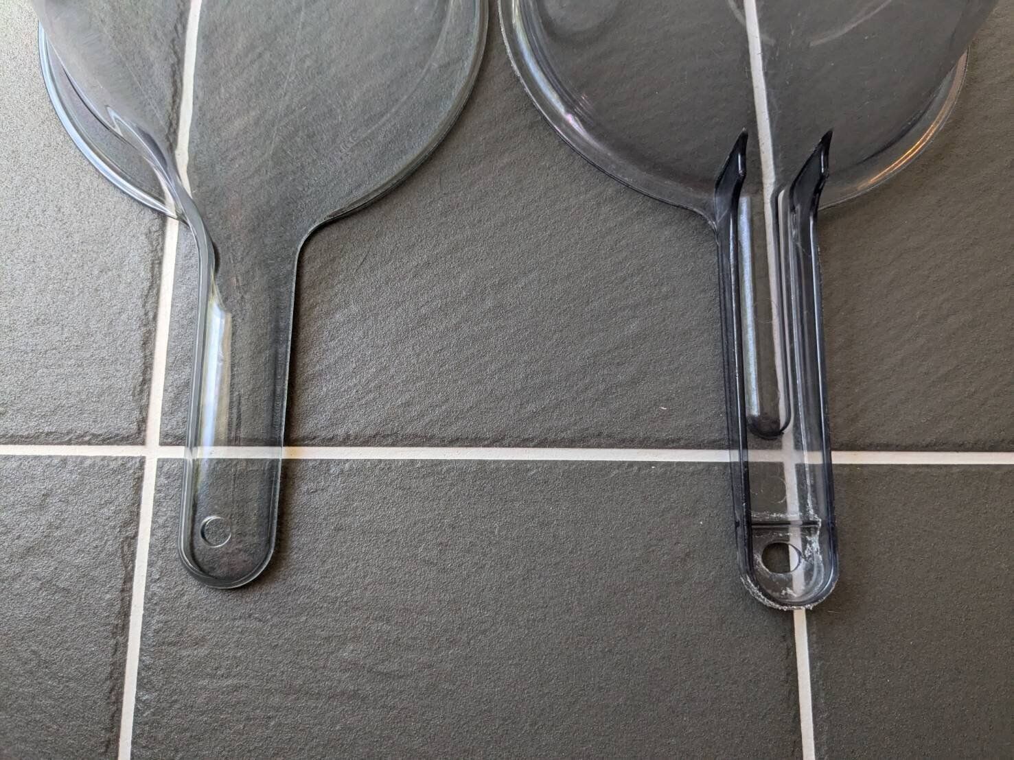 写真向かって右側の「旧デザイン」では凹凸が多いのに対し、向かって左側の「新デザイン」ではできるだけシンプルな構造になっています。水が溜まりにくいのはもちろん、汚れた場合もスポンジで擦りやすい形状です。