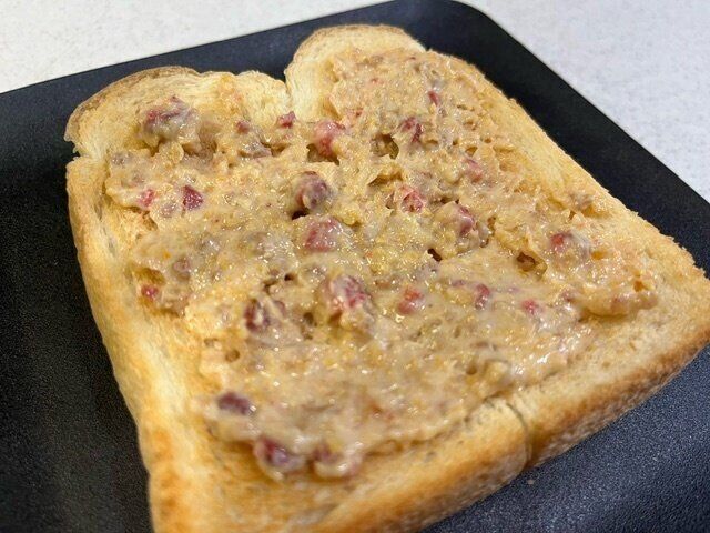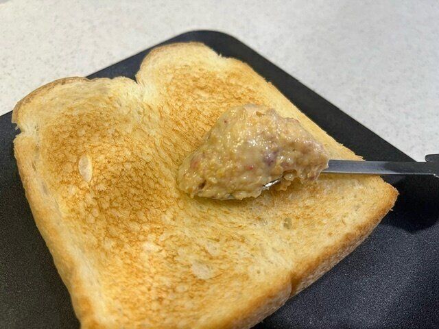 ピーナツバターのような感じでドライいちごみたいなものが見えます。