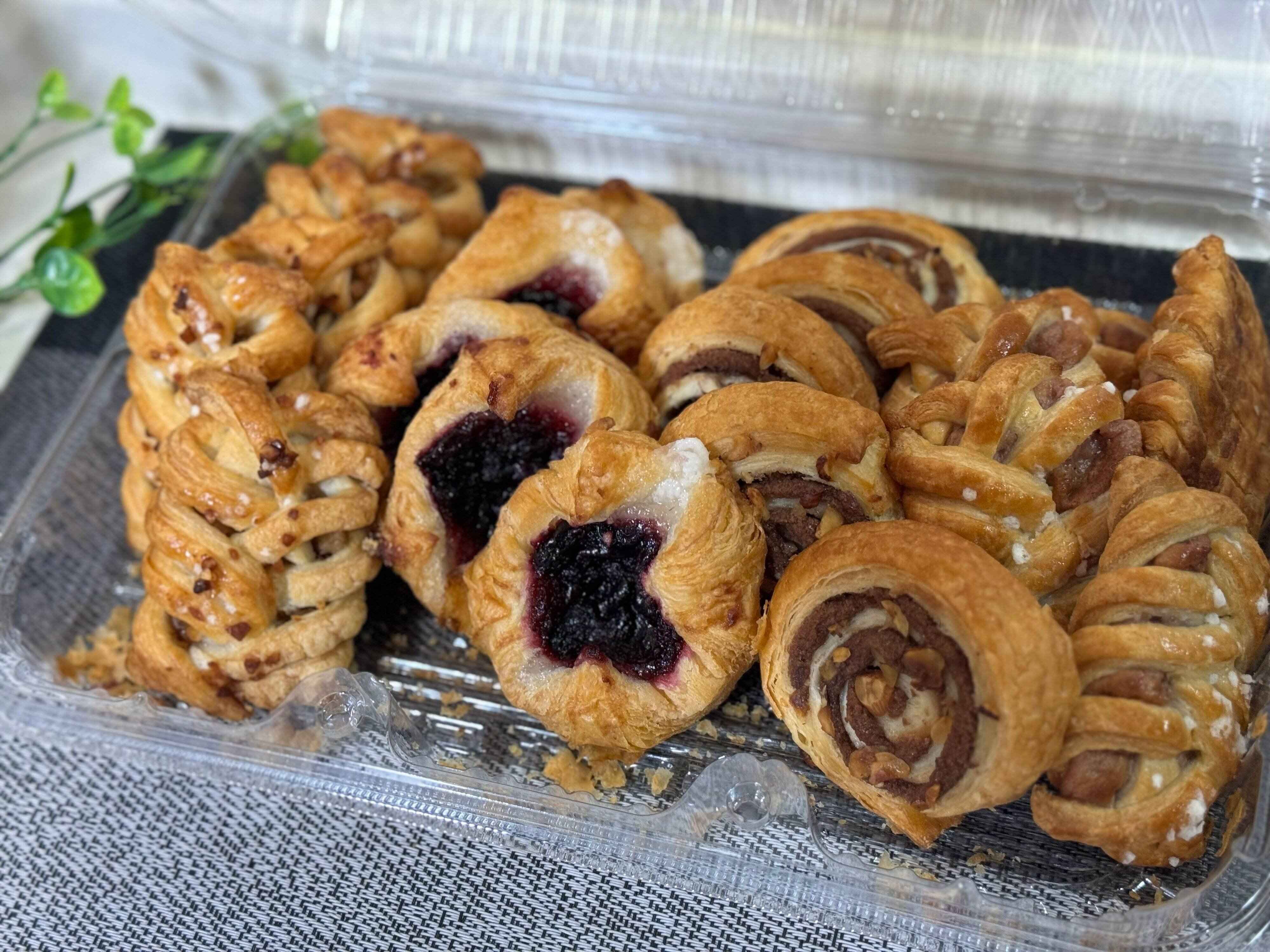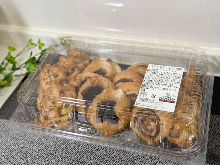 ベーカリーの新作はデニッシュ。4種が5個ずつはいっており小さいので食べやすいです。味はカシス、ヌガーナッツ、アップルシナモン、ストロベリークリームチーズ。どの味も甘くておいしくつい何種類かまとめて食べられます。とくにお気に入りはヌガーナッツ、甘すぎずナッツの歯ごたえもあり1個が小さいのでついもう1個…と手が伸びてしまいました。