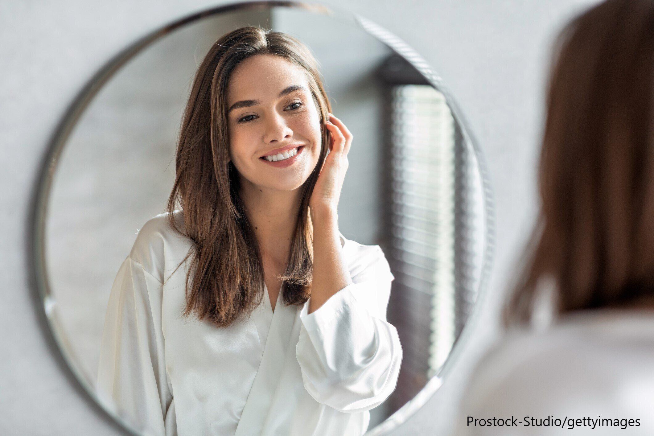 入浴後にスキンケアしながら、鏡のなかの自分に「今日も頑張ったね。お疲れさま」と声かけしています。