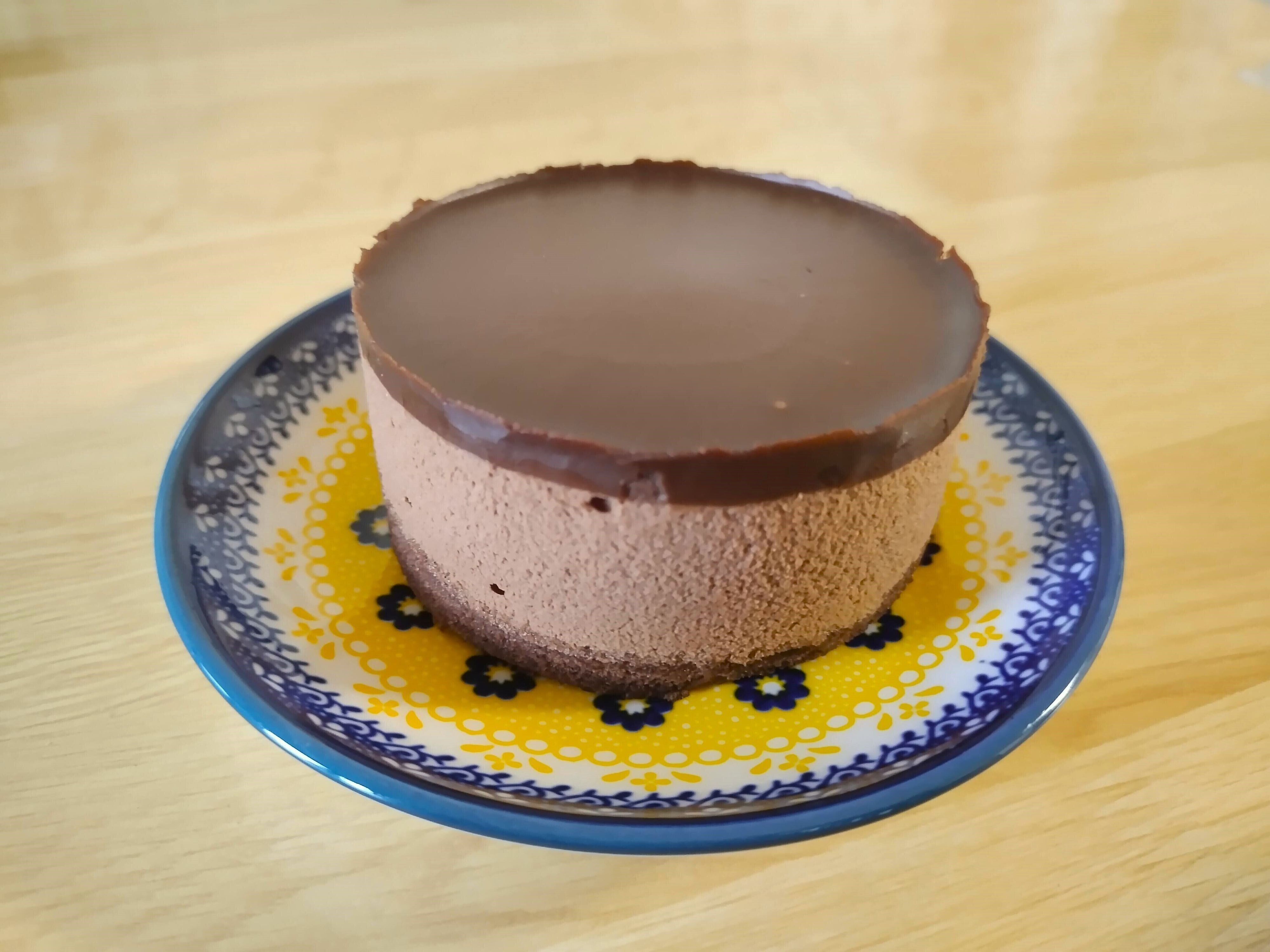 上からガナッシュ、チョコレートムース(中央にチョコレートソース)、一番下はチョコレートスポンジとチョコレート三昧なケーキです。甘みが強いのではないかと思いましたが、思いのほかビターな味わいで大人向けなチョコレートケーキだと思いました。