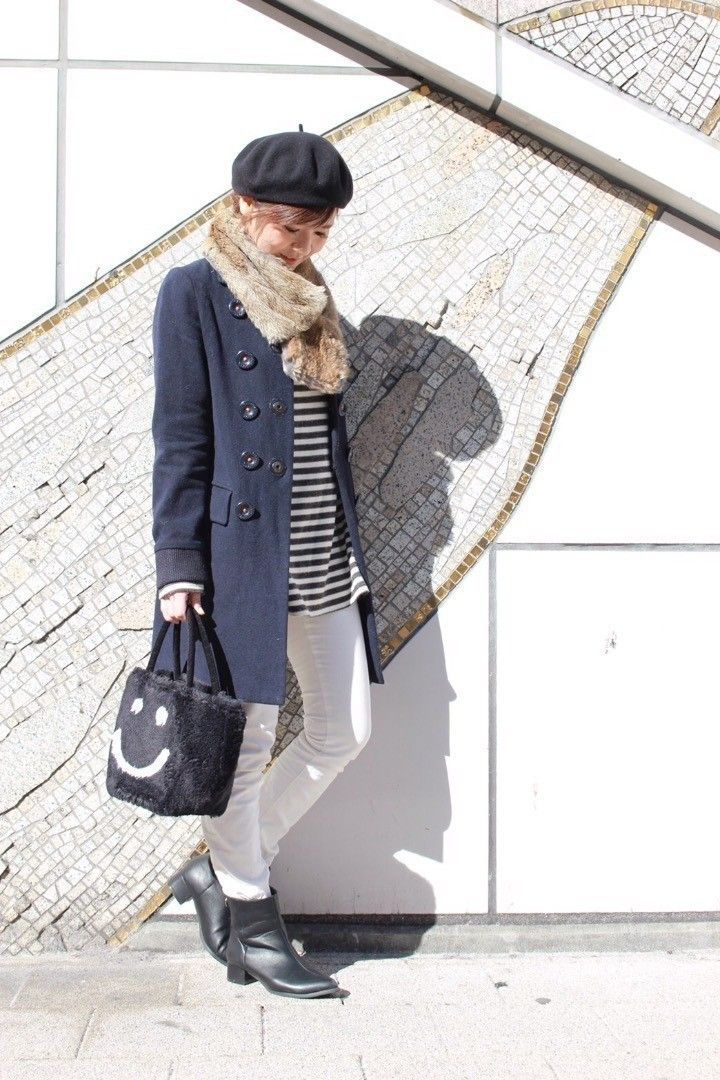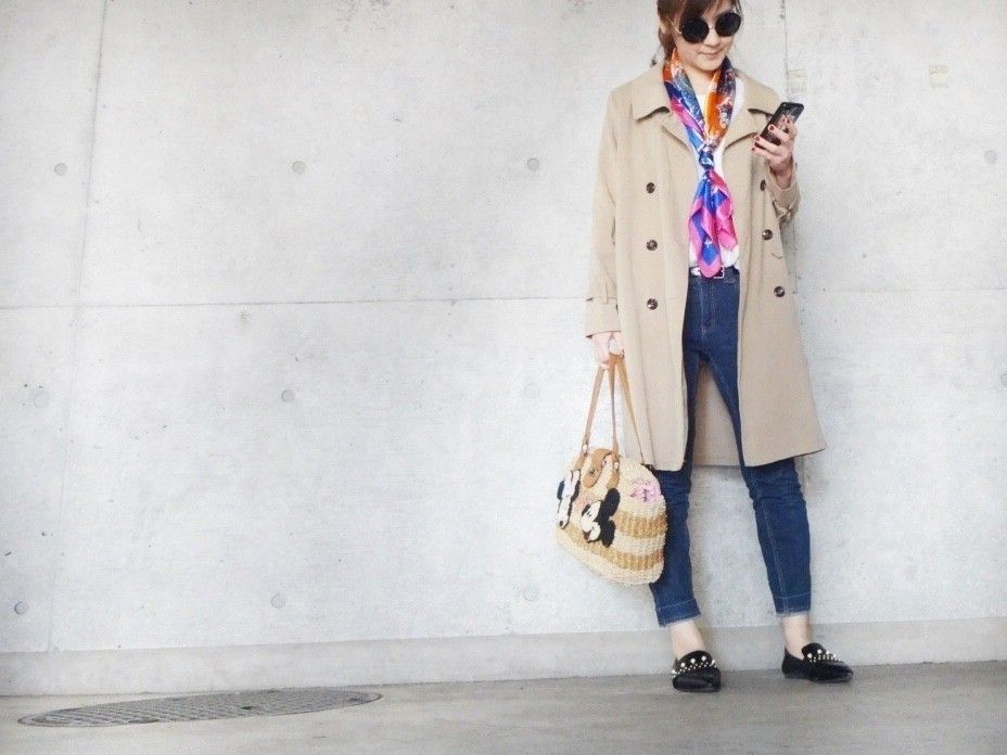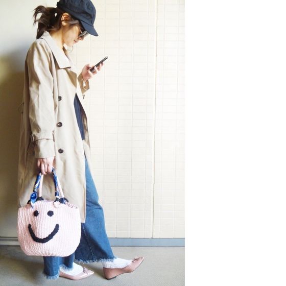 全身コーデを見せる写真は、基本的に目線は外した方が◎。カメラ目線で堂々と撮るよりも、こんな風にさり気ない雰囲気で撮った方が、見る人の興味を引くはず!(サンキュ!ブロガーまるやまひろこさん)