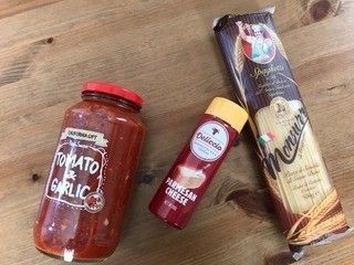 お昼は簡単にパスタという人必見!のんmamaサンの愛用するKALDIのパスタ3点セットでいつものパスタが本格メニューに♪もちもちのパスタに本格的なトマトソースと粉チーズで大満足!ソースは大容量です!