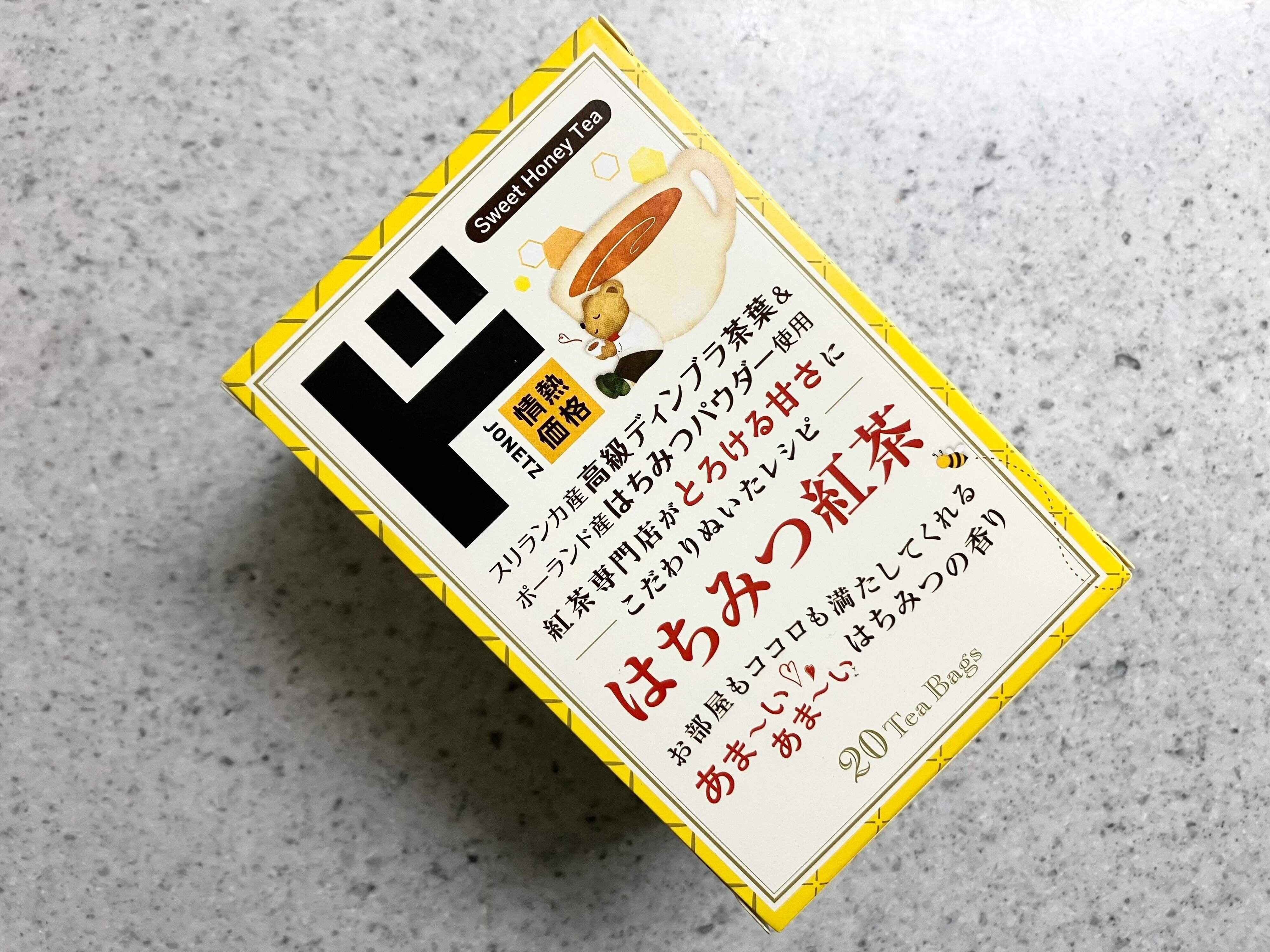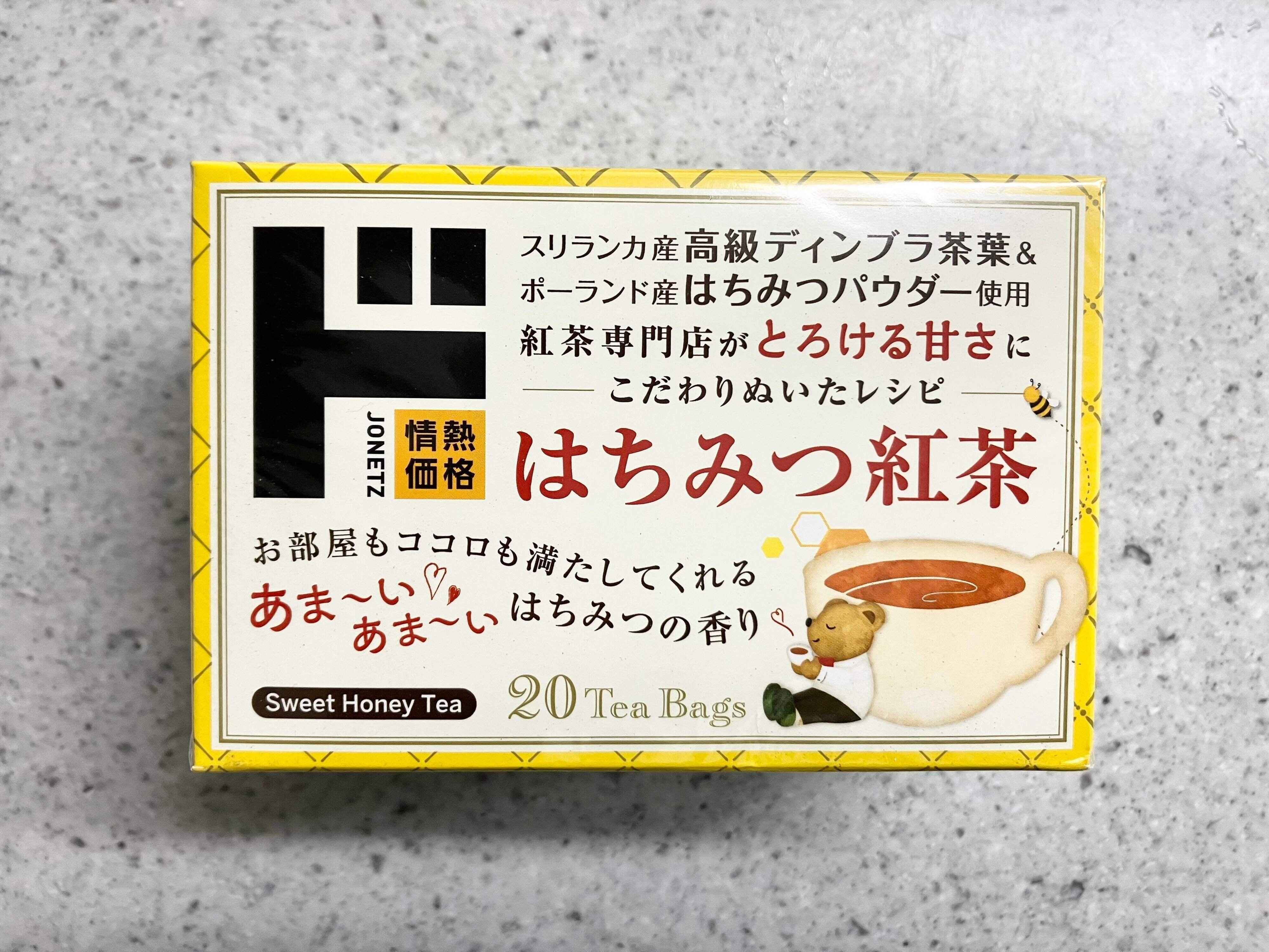 高いものは1箱2,000円近い価格で販売されているはちみつ紅茶。高いものはやはり値段だけあって美味しいのですが、そんなに毎日に気軽に何杯も飲めるものではありません。お手頃価格のはちみつ紅茶を買ってみたら、甘味が足りず紅茶に近い味と満足いくものではありませんでした。そしたらなんと、ドン・キホーテにもオリジナルブランドのはちみつ紅茶が情熱価格で販売されていました!ドンキ特有の文字を抜かせば、くまのイラストもかわいい。中の個包装だけ見ると、ドンキの商品とは思えません。そしてお値段は、20袋入りで647円!はちみつ紅茶にしてはかなり安いです。しかも、こちらの紅茶は「スリランカ産高級ディンブラ茶葉&ポーランド産はちみつパウダー使用」ということで、中身にもこだわりがあります。