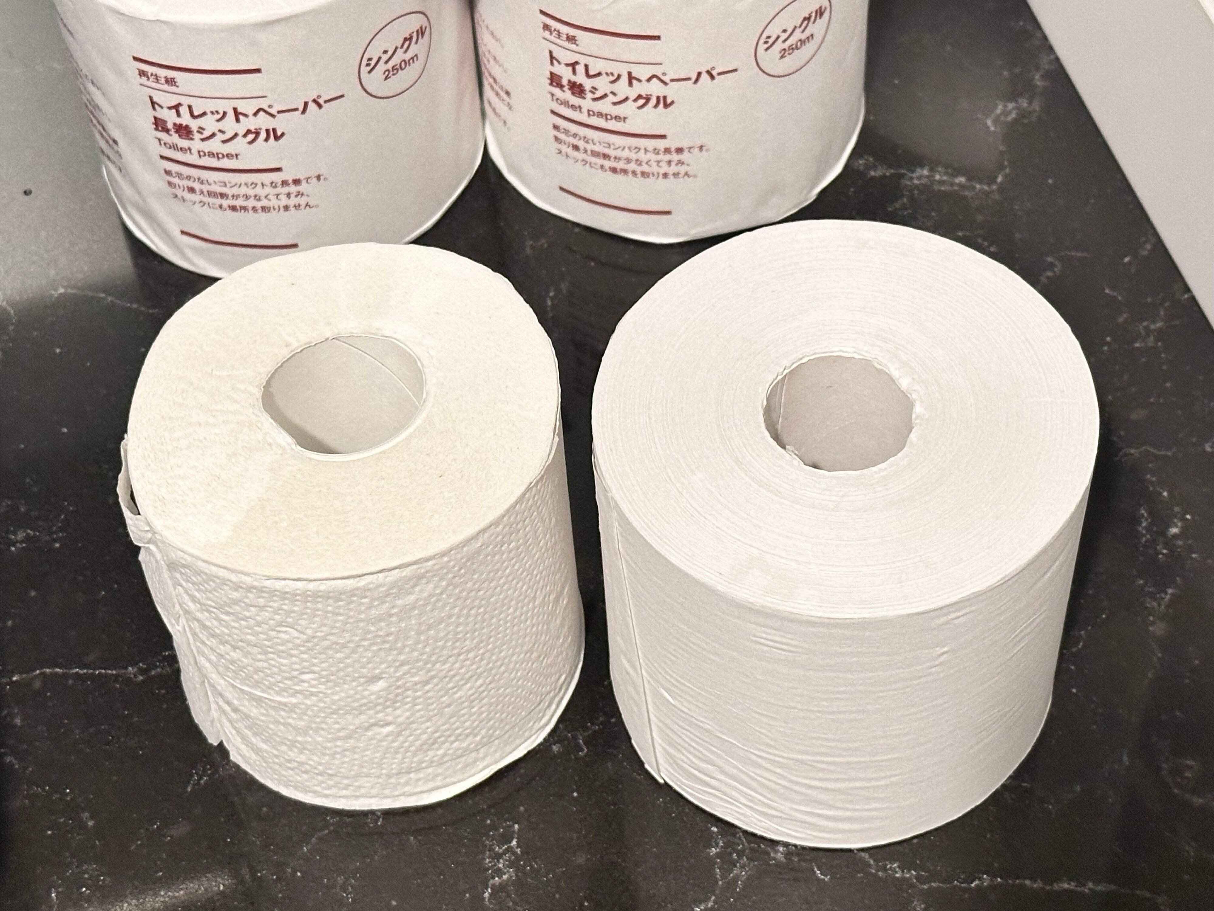 商品は、無印良品の『再生紙トイレットペーパー5倍巻き シングル』です。