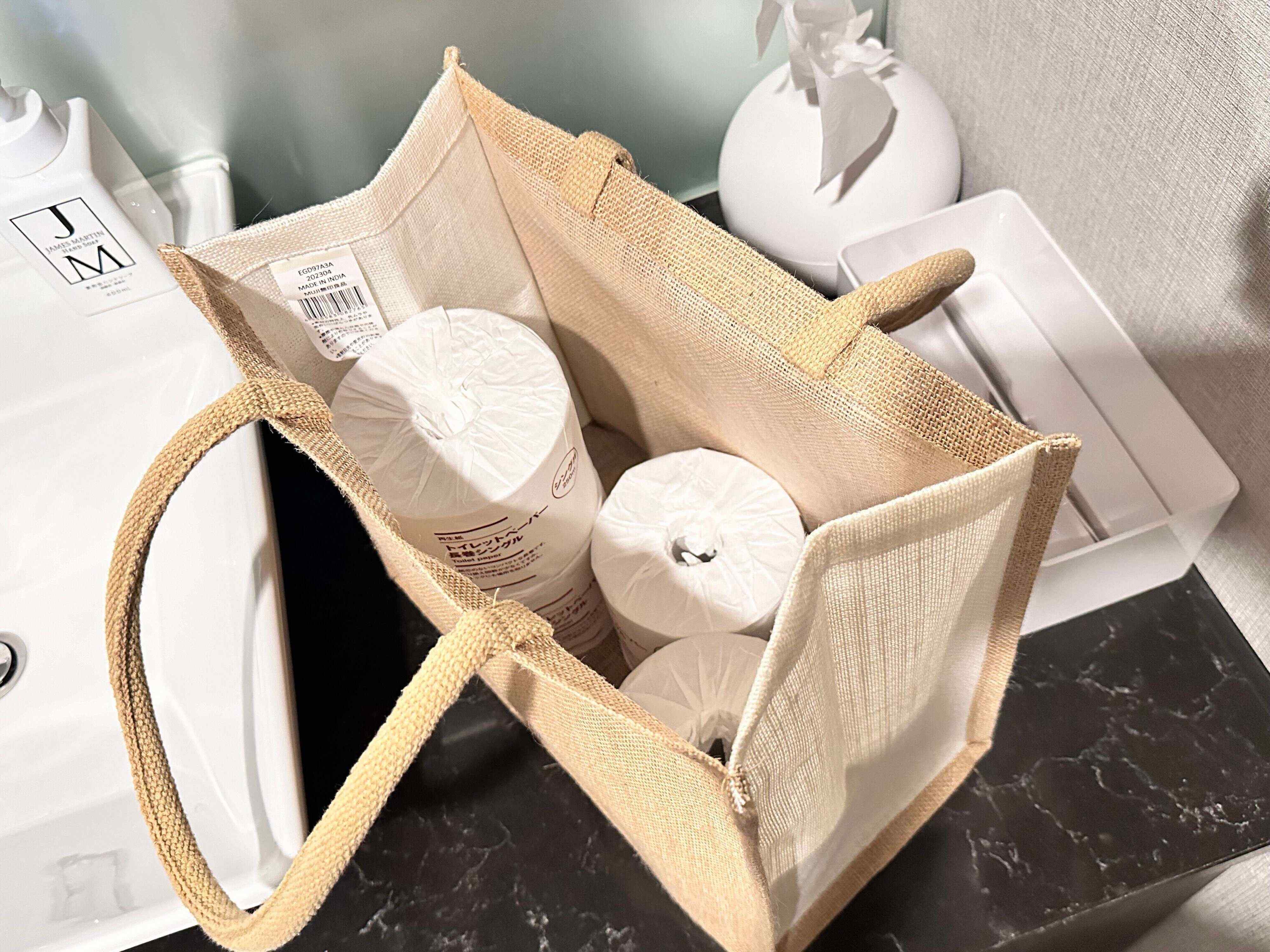 トイレットペーパーって購入してお店から自宅まで持って帰るのがほんとたいへんなんですよね……。家族が多いと、購入回数も交換回数も多いため、うんざりされているかた多いと思います。かといって、トイレットペーパーを切らすわけにはいかないし、常にストック数を把握して管理しておかなければいけません。無印良品の5倍巻きに変えることで、購入回数も交換回数も劇的に減らすことができるので、めんどくさい家事が一つ楽になってくれます。そして、トイレットペーパーを収納する場所に困らないメリットも!12ロール入りのトイレットペーパー1個で5個分なので、災害時の備えとして置いておくのにもぴったりなんです。