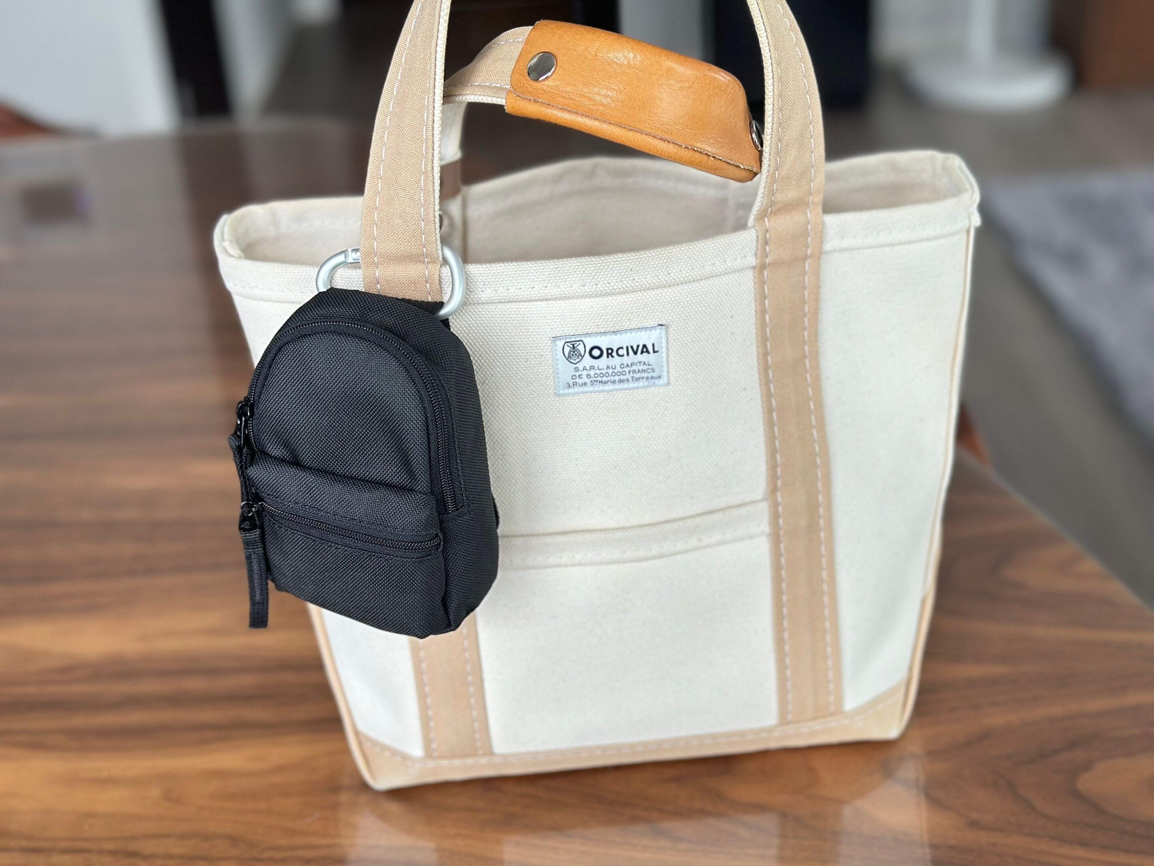 トートバッグの持ち手に引っ掛けたい場合は、100均などでカラビナを購入して使うのがおすすめです!カラビナを肩ベルトに通すと安定してくれますし、見た目もすごくかわいいのでおすすめですよ!