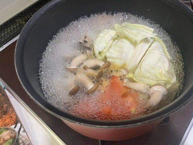 あとは普通の鍋の作り方と同じで、好きな具材を入れて煮込むだけ。