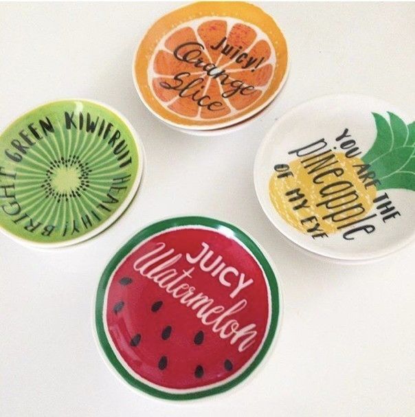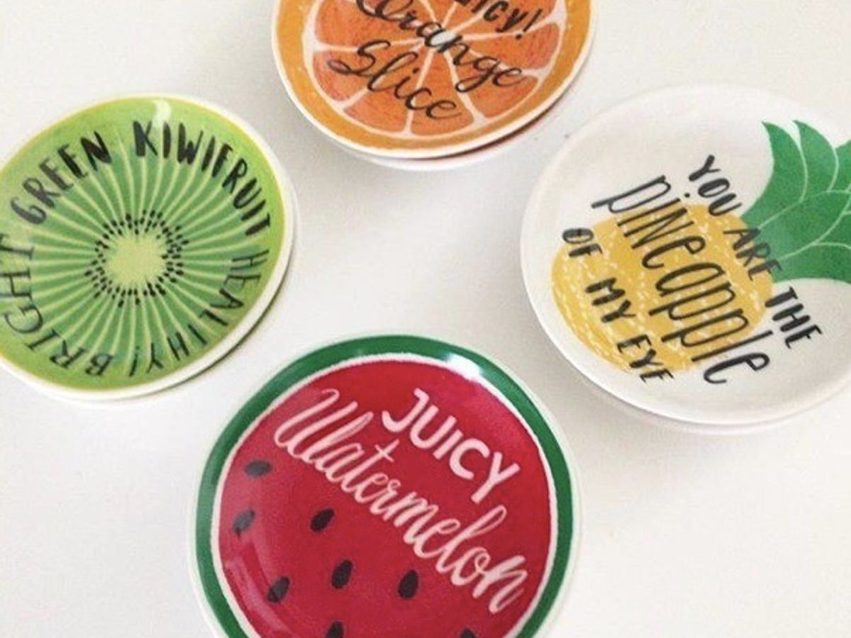 こちらはセリアのフルーツデザインの豆皿。気温が上がる春夏には、食卓を華やかに見せてくれそうですね。小物入れにも最適です。