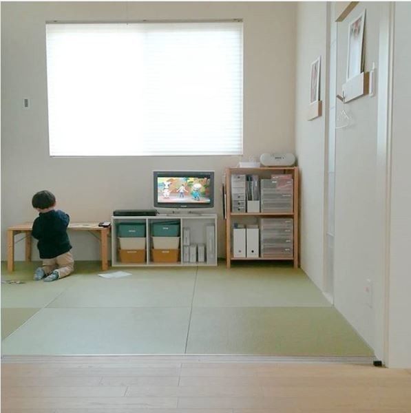 ついつい増えてしまいがちなおもちゃや絵本。ポリプロピレンボックスの引き出しに分けたり、ファイルボックスに立てたり。収納を統一するだけで見た目も抑えられシンプルに。