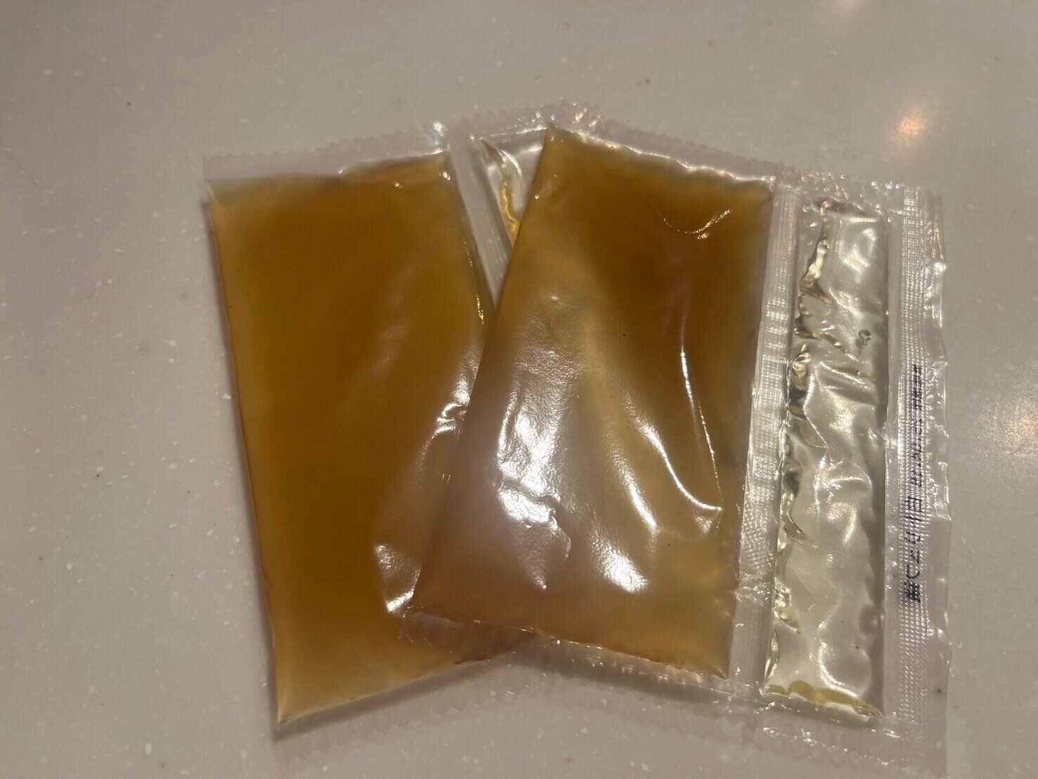 1人分の鍋スープと白トリュフオイルが、それぞれ2袋ずつ入っていました。好きなときに1人前から、気軽に鍋を楽しめますよ。