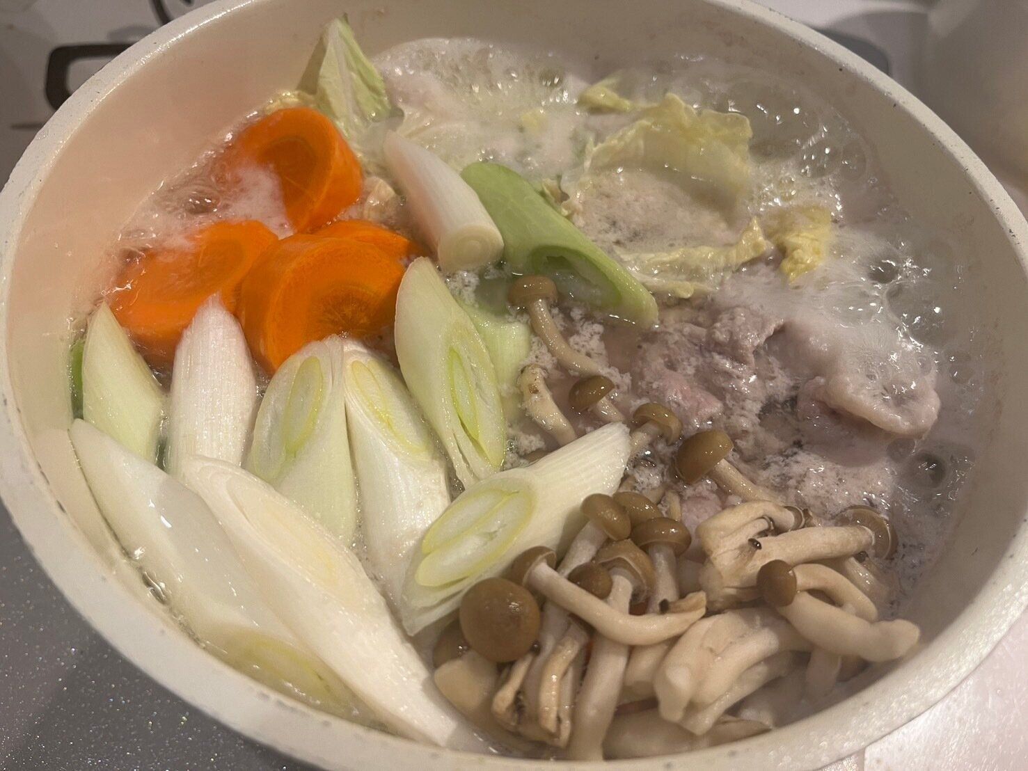 おすすめの具材として鶏もも肉・キャベツ・にんじん・ブロッコリーが記載されていました。今回は白菜や豚肉、ネギなどどちらかというと和風な材料でつくりましたが、おいしく仕上がりましたよ。