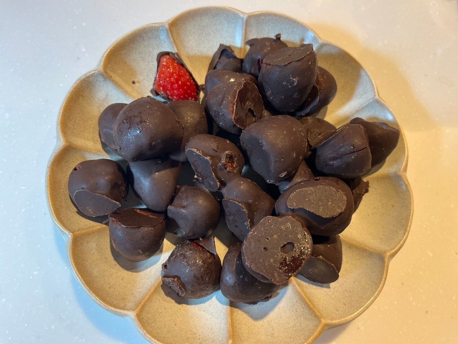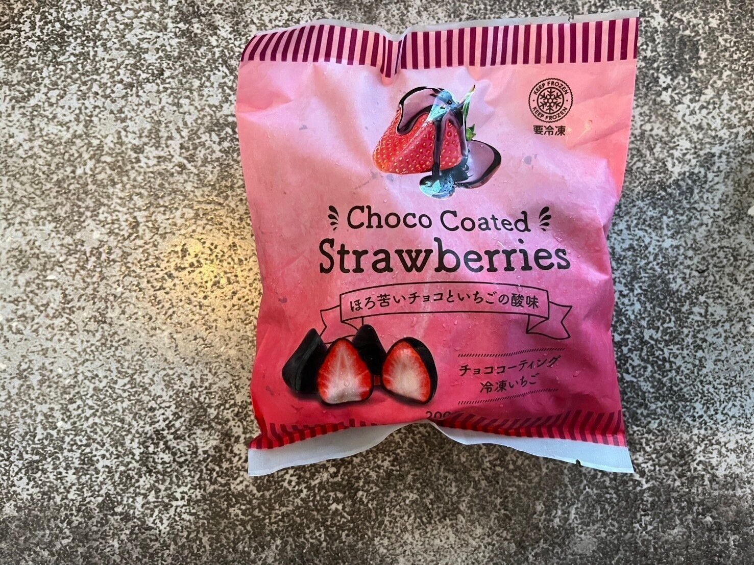 大きさはまちまちですが、こちらは1袋に28粒入っていました。ほろ苦いチョコレートと甘酸っぱいいちごが絶妙にマッチ。チョコのコーティングは薄く、パリパリとした食感です。いちごの酸味のおかげでさっぱりと食べられます。