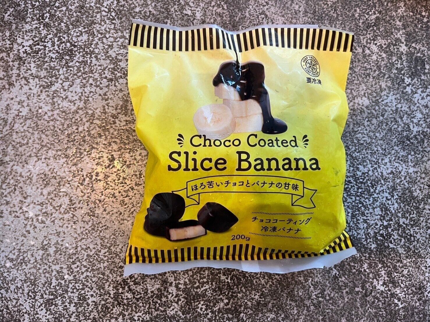 チョコでコーティングされた冷凍のバナナが、1袋に22個入っていました。バナナは薄くスライスされていて、ひと口サイズのチョコバナナといった感じ。チョコとバナナの組み合わせは間違いないですよね。