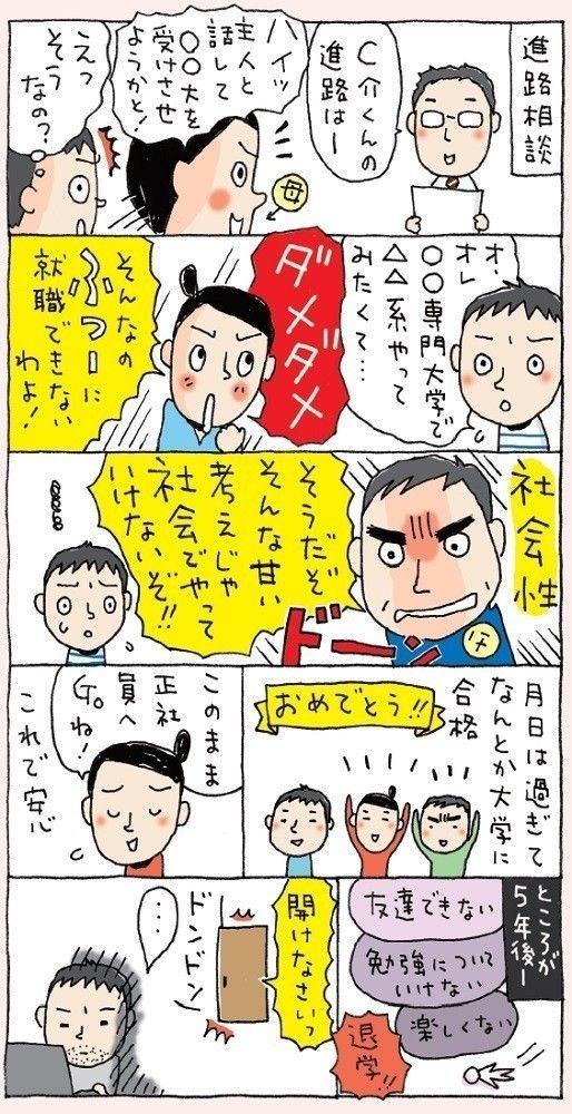 工藤:浪人も留年もせず大学を卒業し、すぐに企業に就職して3年以上働いている人のことを、私たちの業界では“ストレーター”と呼んでいるのですが、昔だったら普通であったこのストレーターが、今は3~4割しかいないんです。つまり6~7割はもはや普通じゃない。普通のあり方が大きく変化していることを、親として知っておいてもいいと思います。