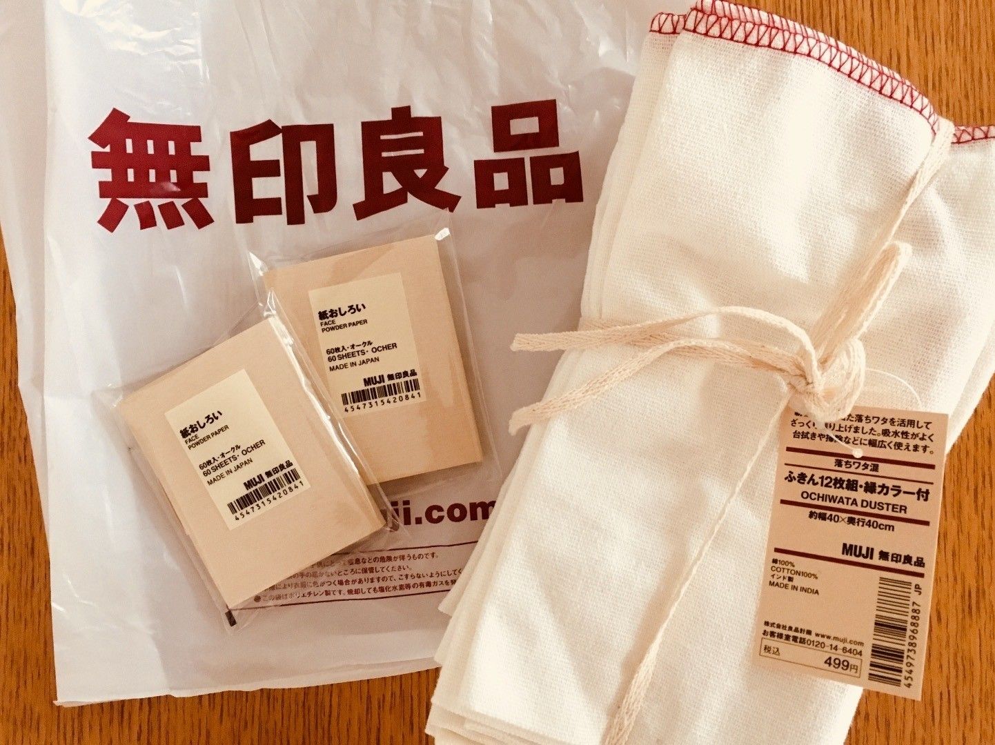 ブロガーのerikoさんが無印良品週間中にゲットしたのは、汗をかきやすい季節に大活躍する「紙おしろい」です。粉おしろいが付いていて化粧直しにも使えるので、erikoさんはいつもポーチに入れて持ち歩いているそうです。そのほかに、台拭きやパンづくりなど、さまざまな用途で使えるふきんも購入しました。