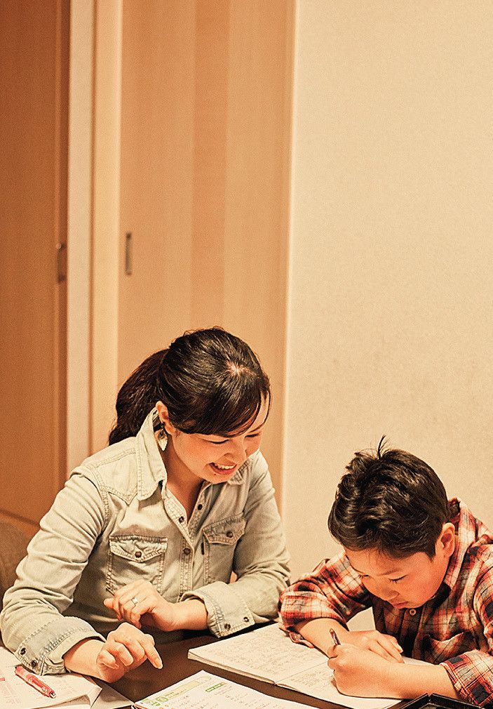 夕食後は、息子くんの宿題の丸つけをしながら、菊地さんも英語の勉強スタート。「語学学校の宿題が多いから必死です」