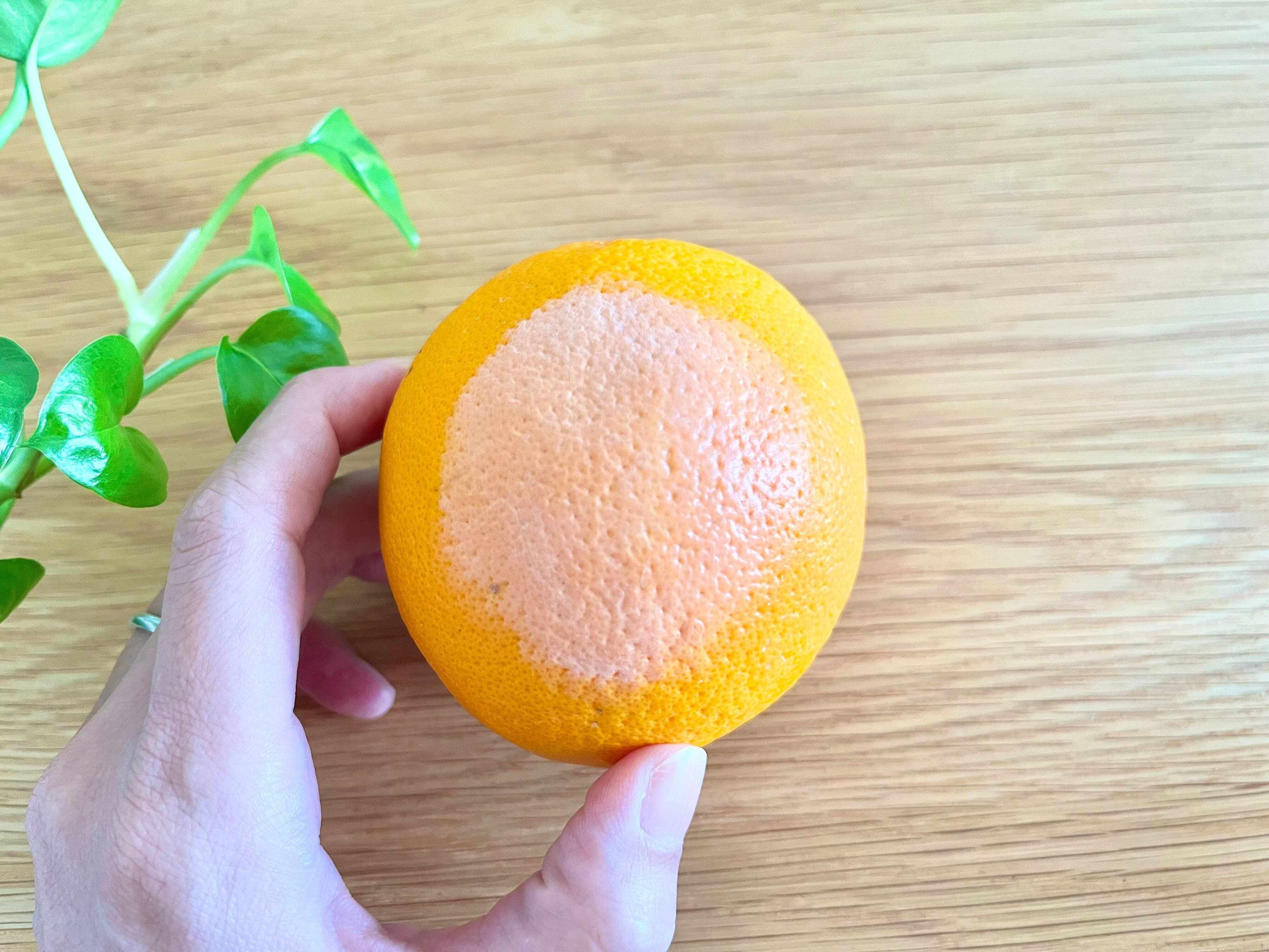 わかりやすいようにオレンジの皮に塗ってみました。