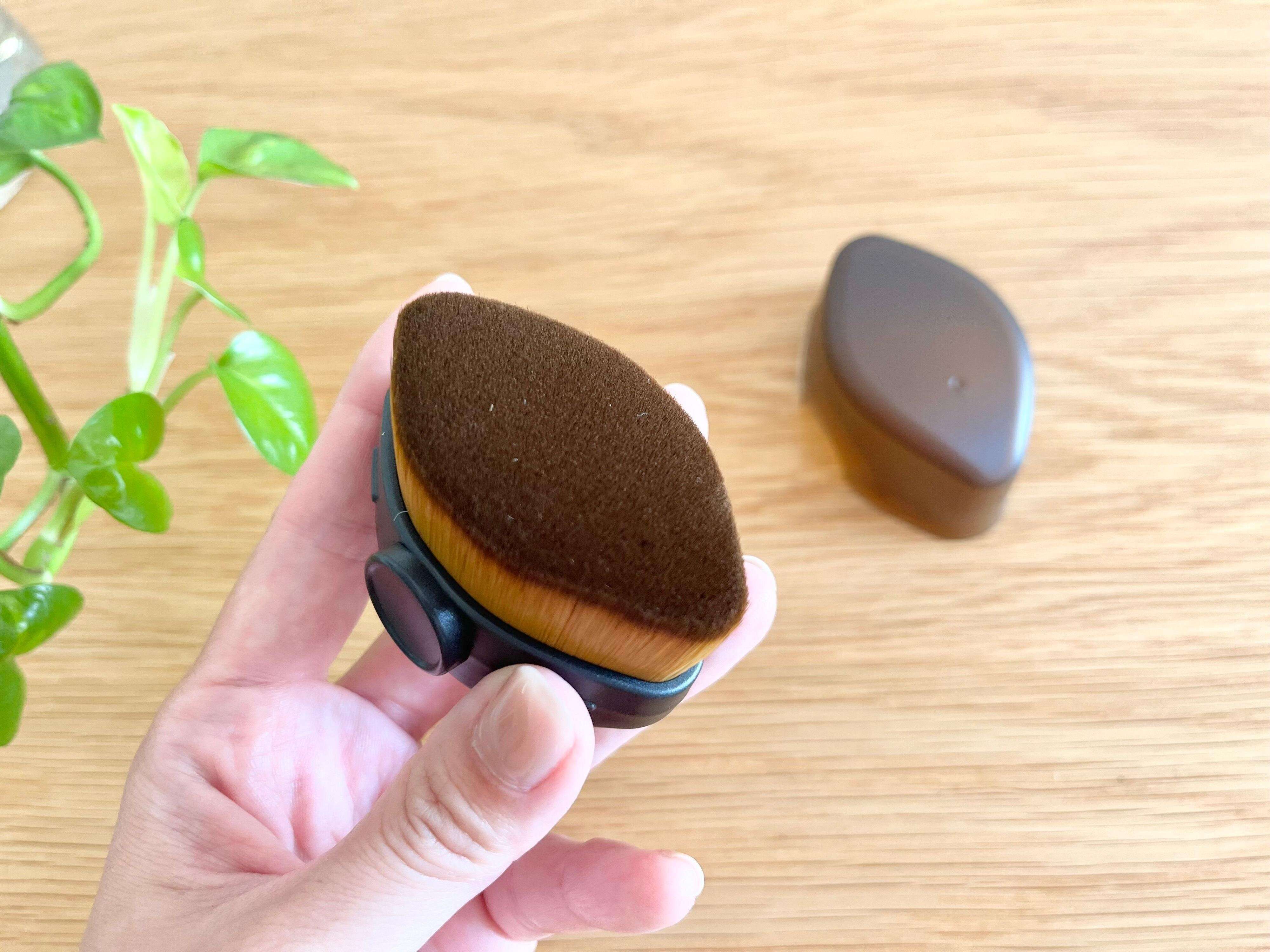凸凹部分にも濃密で極細のブラシの毛がしっかり入り込み、キレイにファンデーションを塗ることができました。ムラになりにくいのも好印象!肌あたりは柔らかく、摩擦も少ないので敏感肌の方にも良さそうです。