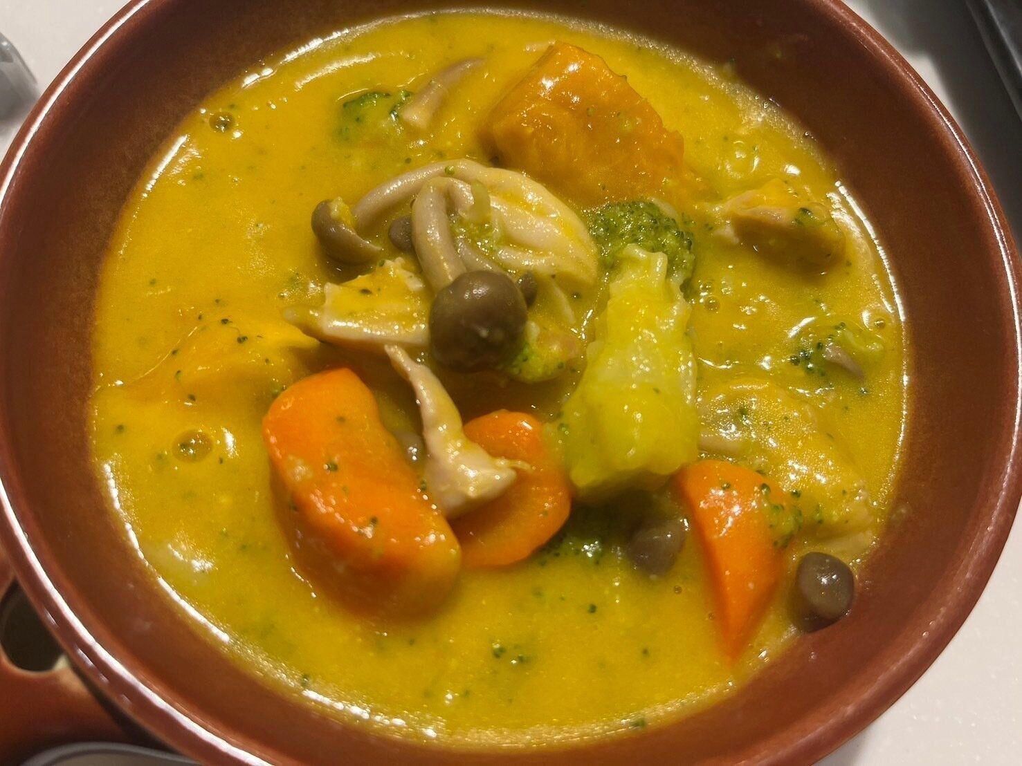 かぼちゃのうまみが溶け込んだシチューは、チーズとバターを使用しており濃厚な味わい。よく、「シチューはおかずになるのか?」論争がありますが…このシチューはご飯と一緒に食べてもおいしいです。もちろんパンとも相性バツグン!具材にもかぼちゃを使えば、よりかぼちゃ感を楽しめておすすめですよ。冷凍のかぼちゃなら、ルーを加える前に入れるだけでOKなので手軽です。