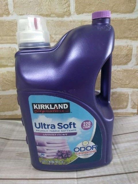 こんまともこさんはいい香りの柔軟剤が大好き!でも住んでいる地域の水質のせいか、柔軟剤を使ってもあまり香りが残らないことに悩んでいました。そこでコストコで見つけたのが、KIRKLANDの柔軟剤。5.53Lで1,198円とコスパがよく、ラベンダーや石けんに似た香りも残って、買って大正解だったそうです!