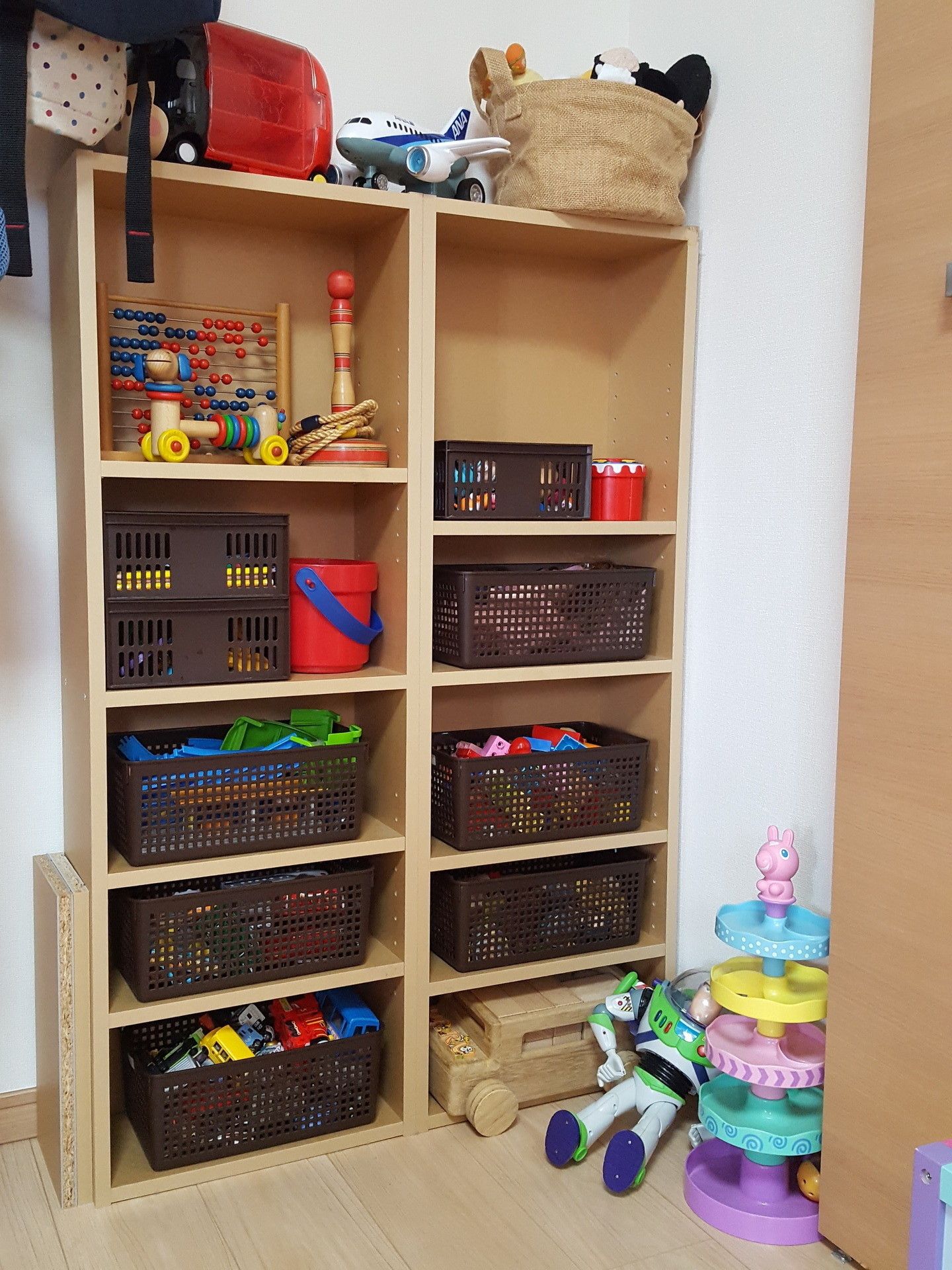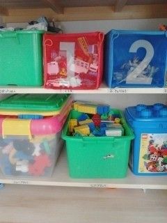 サンキュ!ブロガーみい太さんは押し入れ下段に作ったおもちゃ収納場所に、ポンポン放り込む収納法をセレクト!棚の部分に直接おもちゃの住所を書いて、あとは放り込むだけで、ひとまずOK!