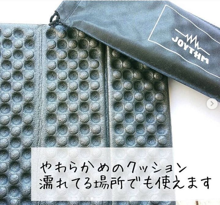 レジャーシートでも長い時間座っていると、お尻が痛くなったり、地面の冷えがツラくなったりしがち。そうなると、せっかくのレジャーも楽しさが半減してしまいます。そこで最後に、レジャーシートといっしょに持っていってほしい、ダイソーで見つけたもうひとつのおすすめ商品もご紹介。その名も「折りたたみ携帯マット」です!